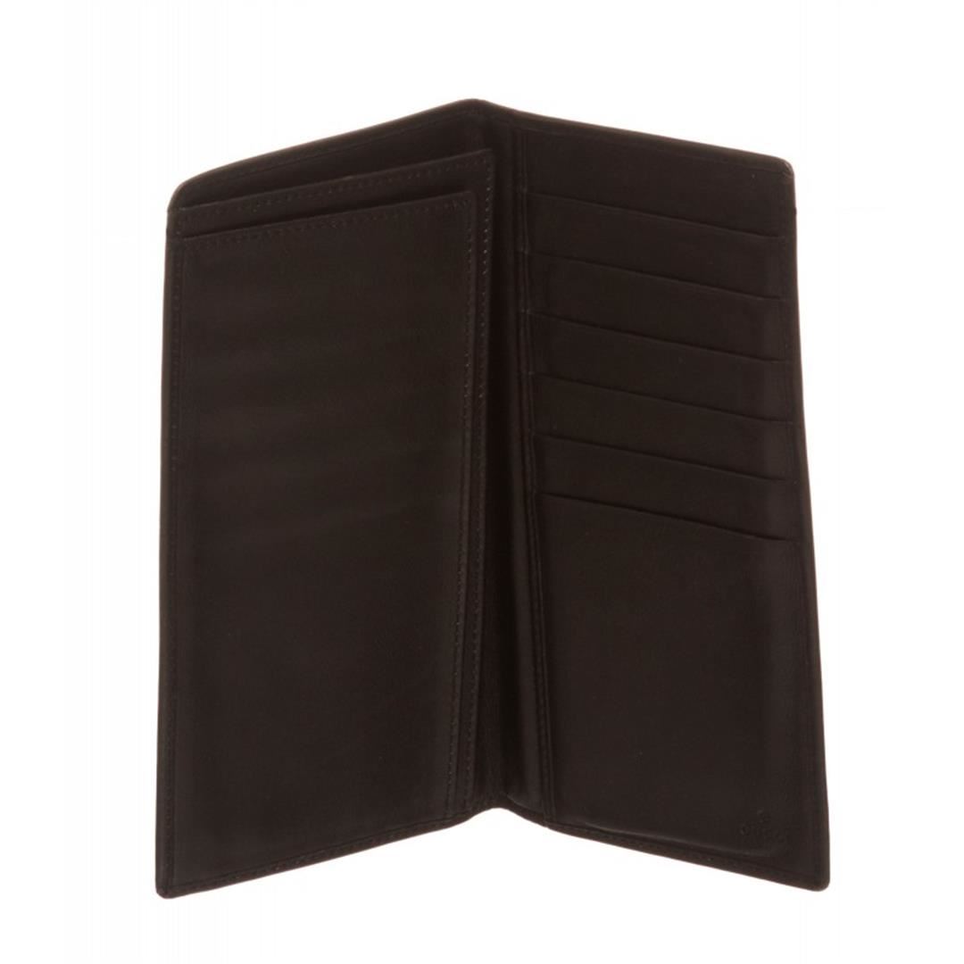 One Gucci Black Leather Bi Fold Checkbook Long Wallet. Crafted out of black leather. Inner six cardots, dual billip pockets, and checkbookip pocket.