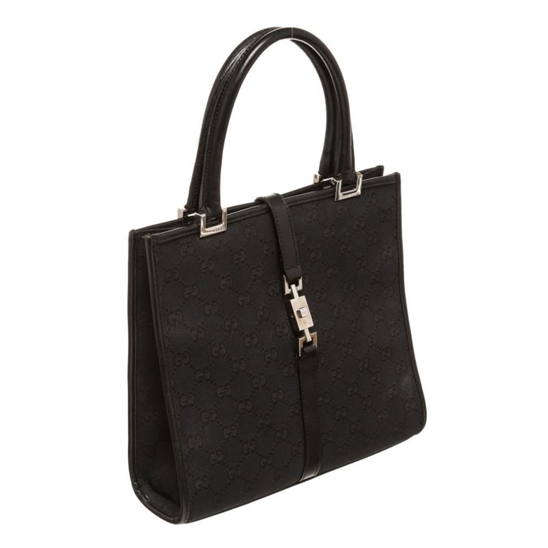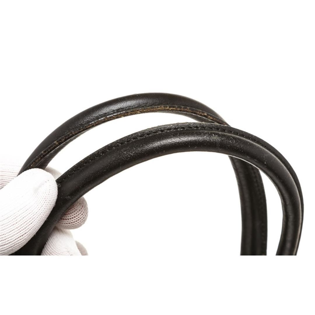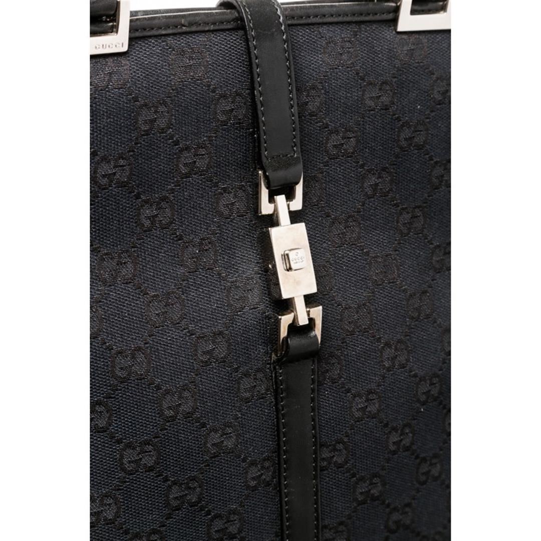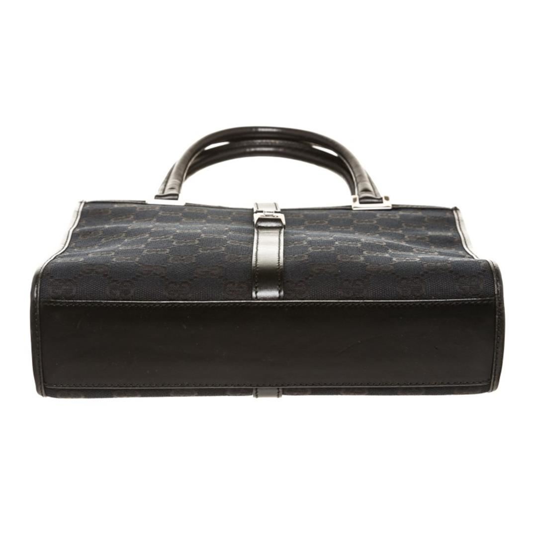 Overall push pin closure. Interior contains fabric lining with one zipper pocket. Item is pre-owned.