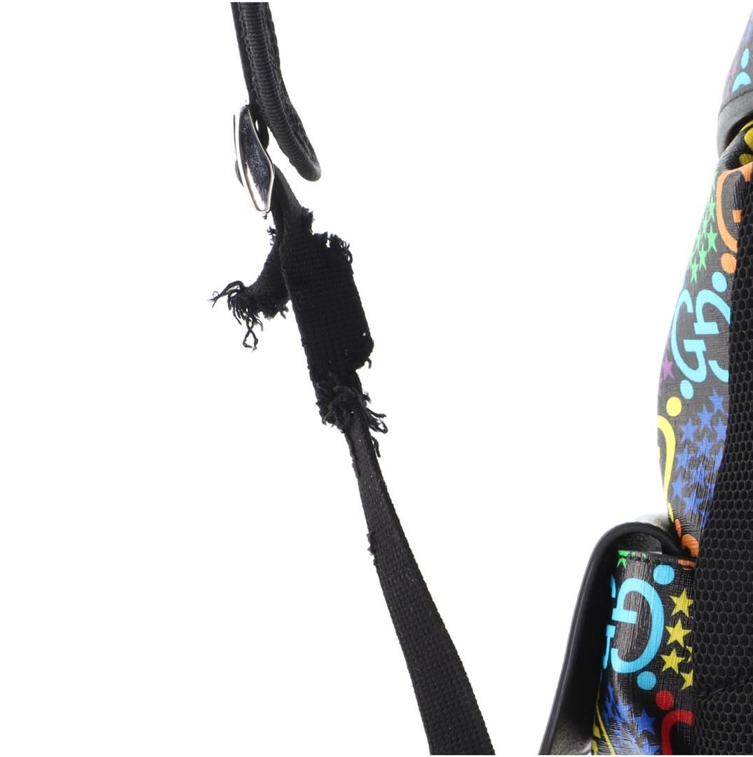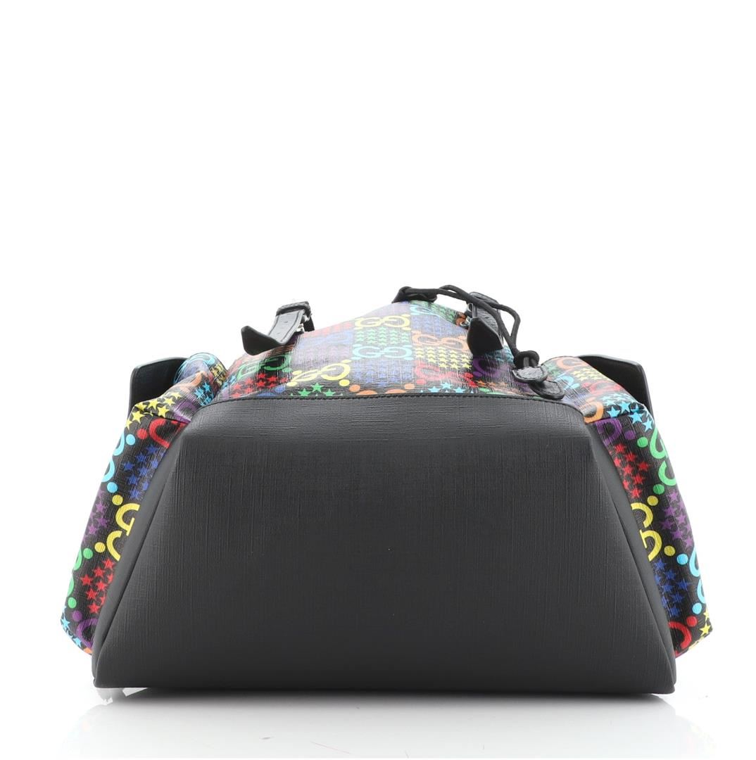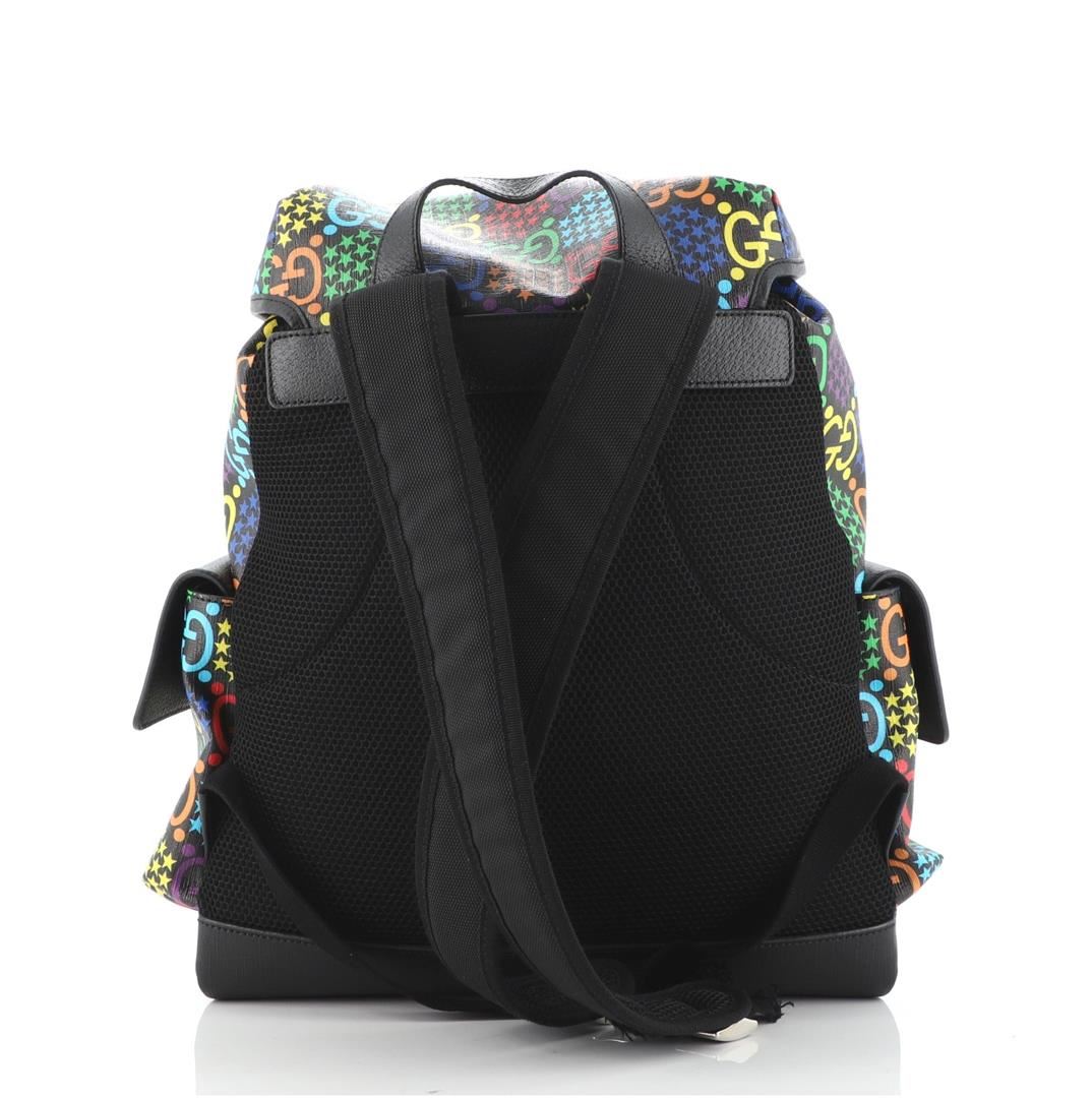 GG Psychedelic Supreme canvas a material, black metal-free tanned leather trim, palladium-toned hardware, black mesh back, and cotton linen lining.
