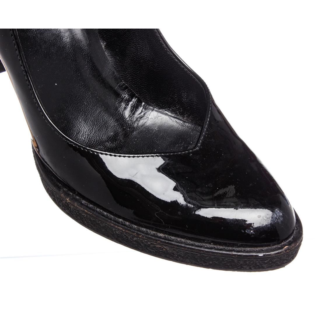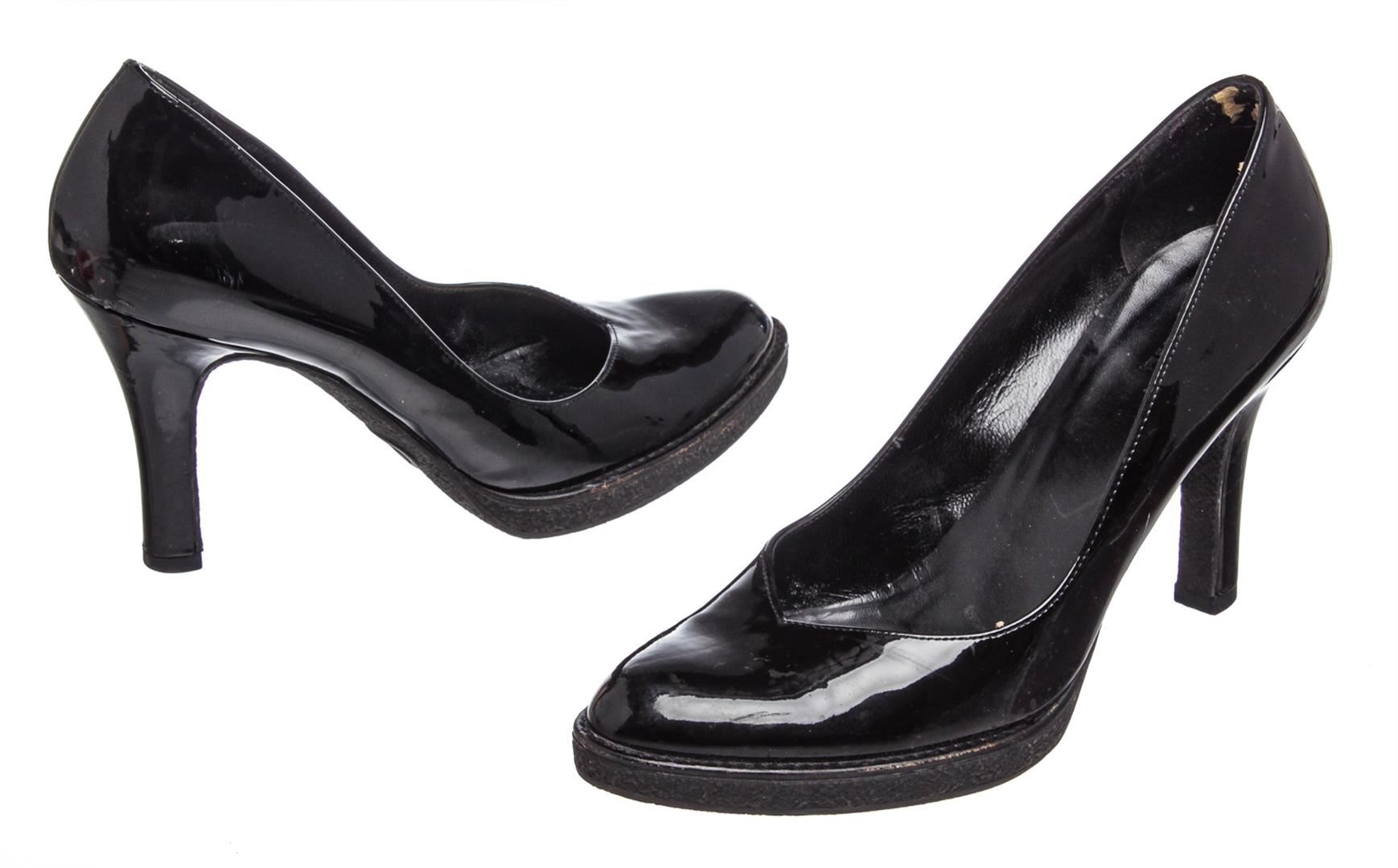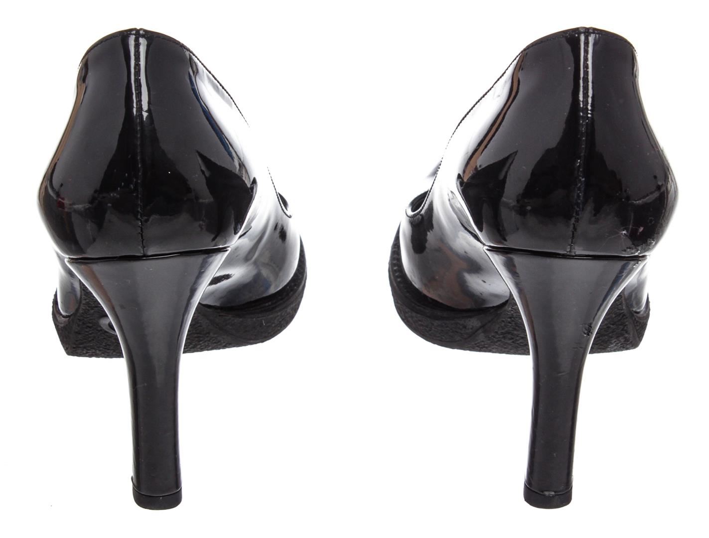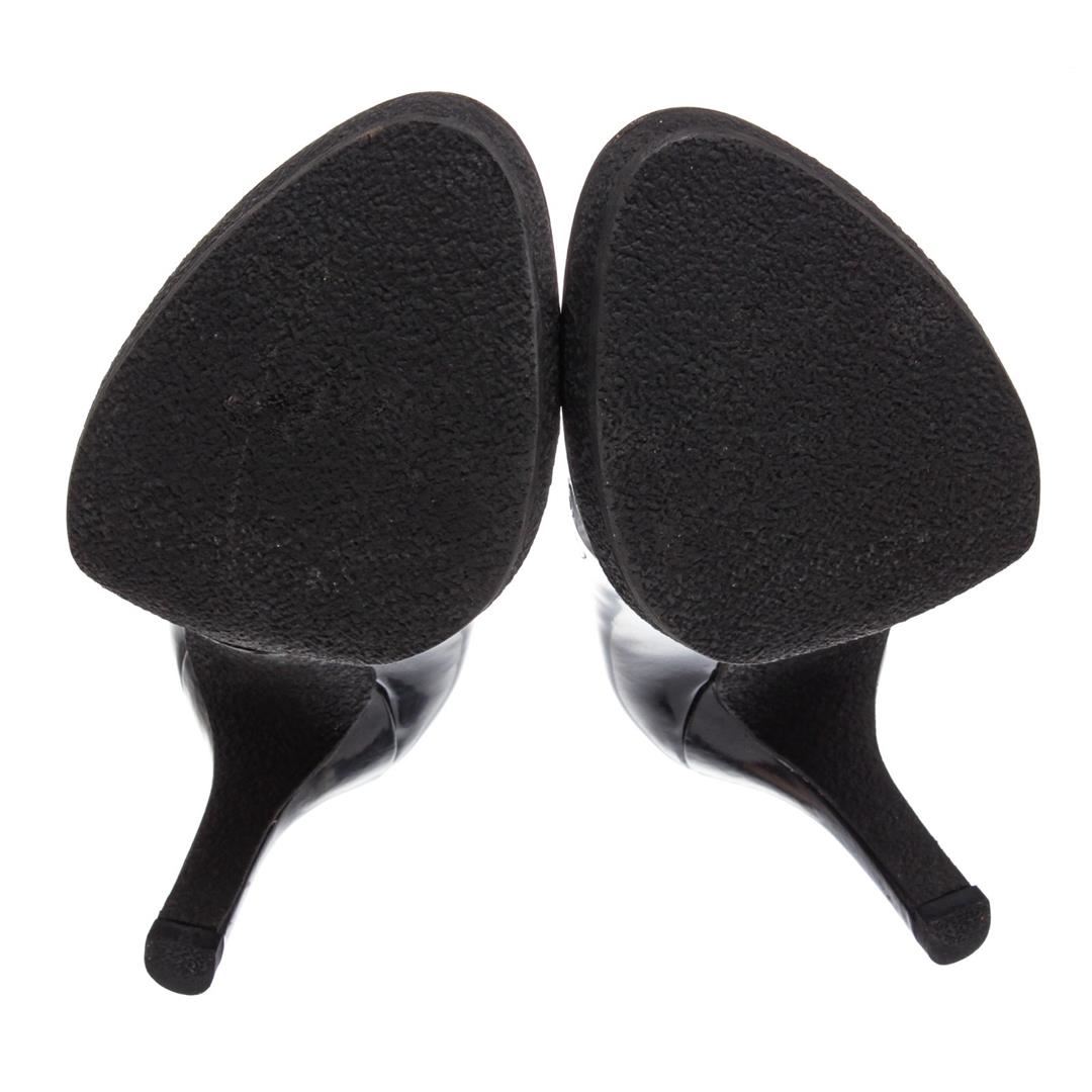 Gucci black patent leather pumps with 0.5" rubber sole and 3.75"x0.5" heel, designer size 37. Authentic.