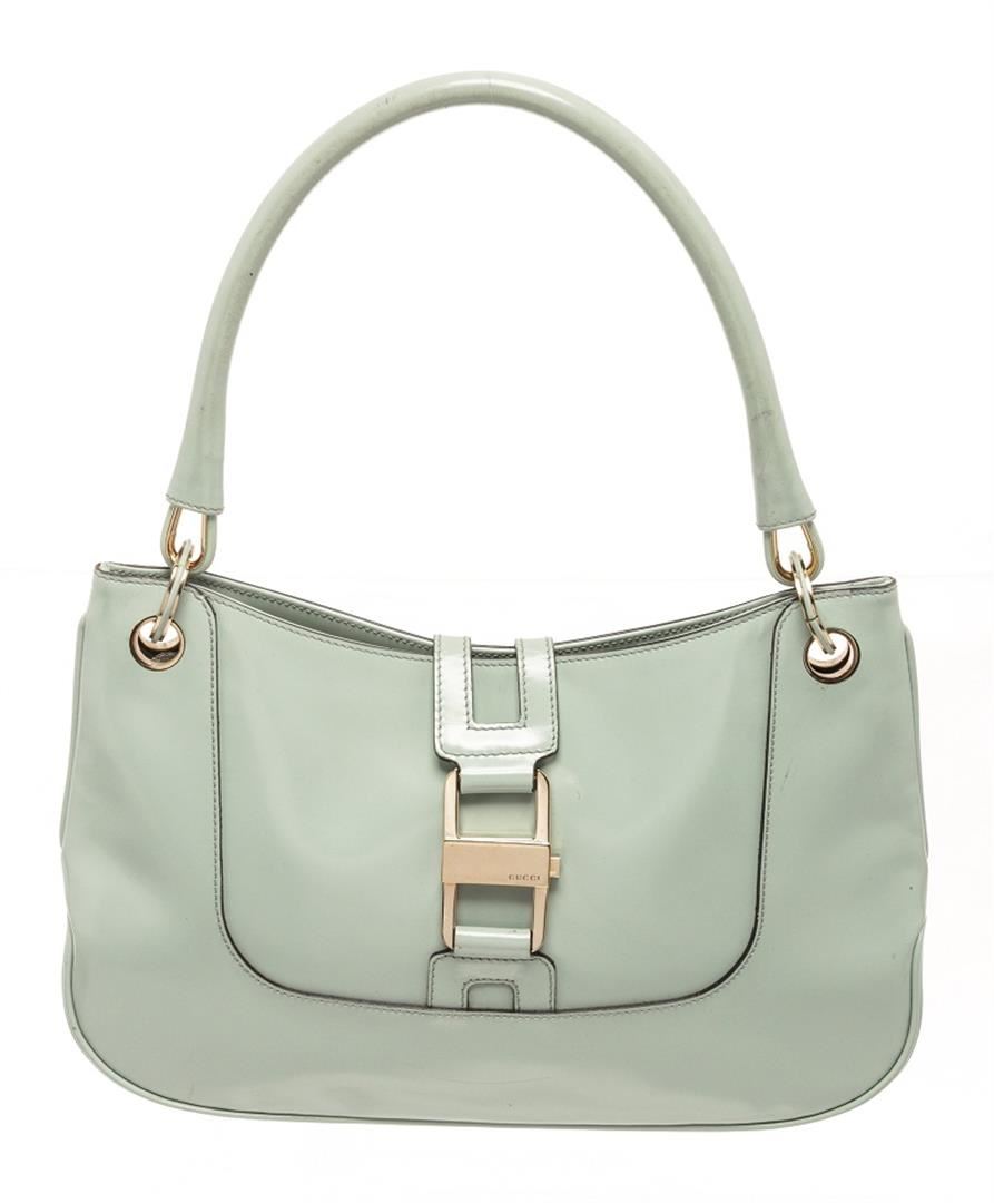 Gucci Blue Leather Lady Lock Shoulder Bag. All available information is listed in the description and shown in the photos. gucci blue leather lady lock shoulder bag with patent leather, shoulder strap handle Height: 12" Width: 1.5" Depth: 7", Shoulder Strap Drop: / 30.48 x 3.81 x 17.78 Cm