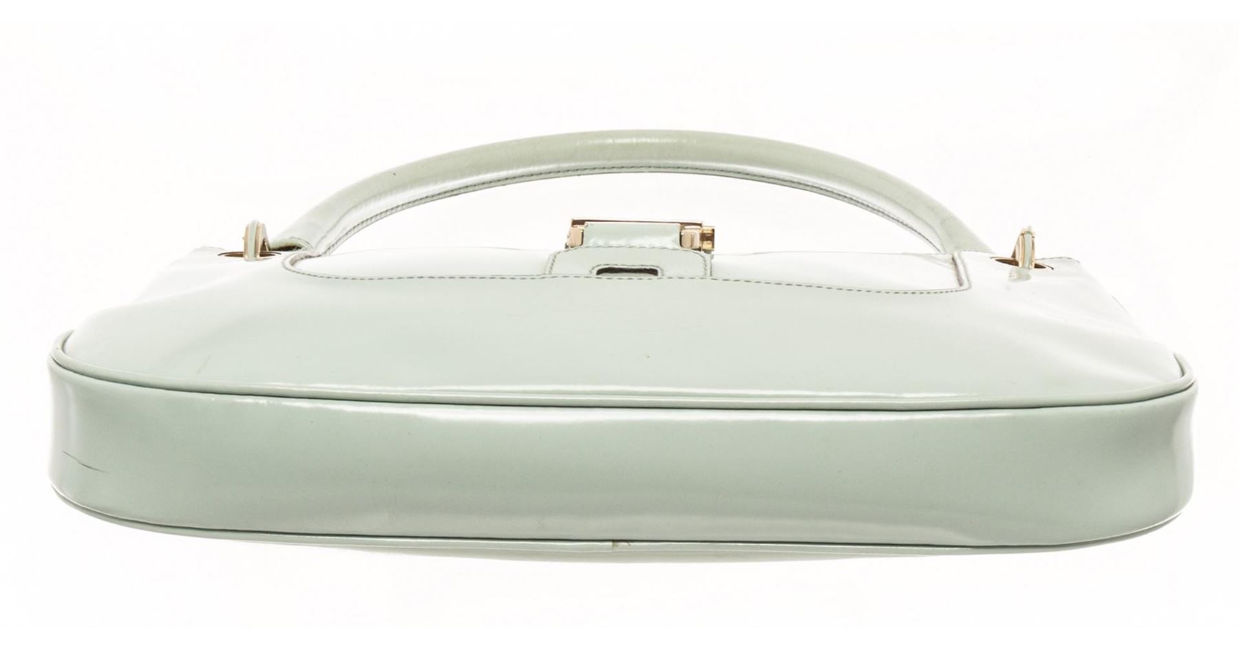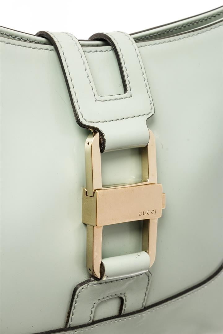 Gucci Blue Leather Lady Lock Shoulder Bag. All available information is listed in the description and shown in the photos. gucci blue leather lady lock shoulder bag with patent leather, shoulder strap handle Height: 12" Width: 1.5" Depth: 7", Shoulder Strap Drop: / 30.48 x 3.81 x 17.78 Cm