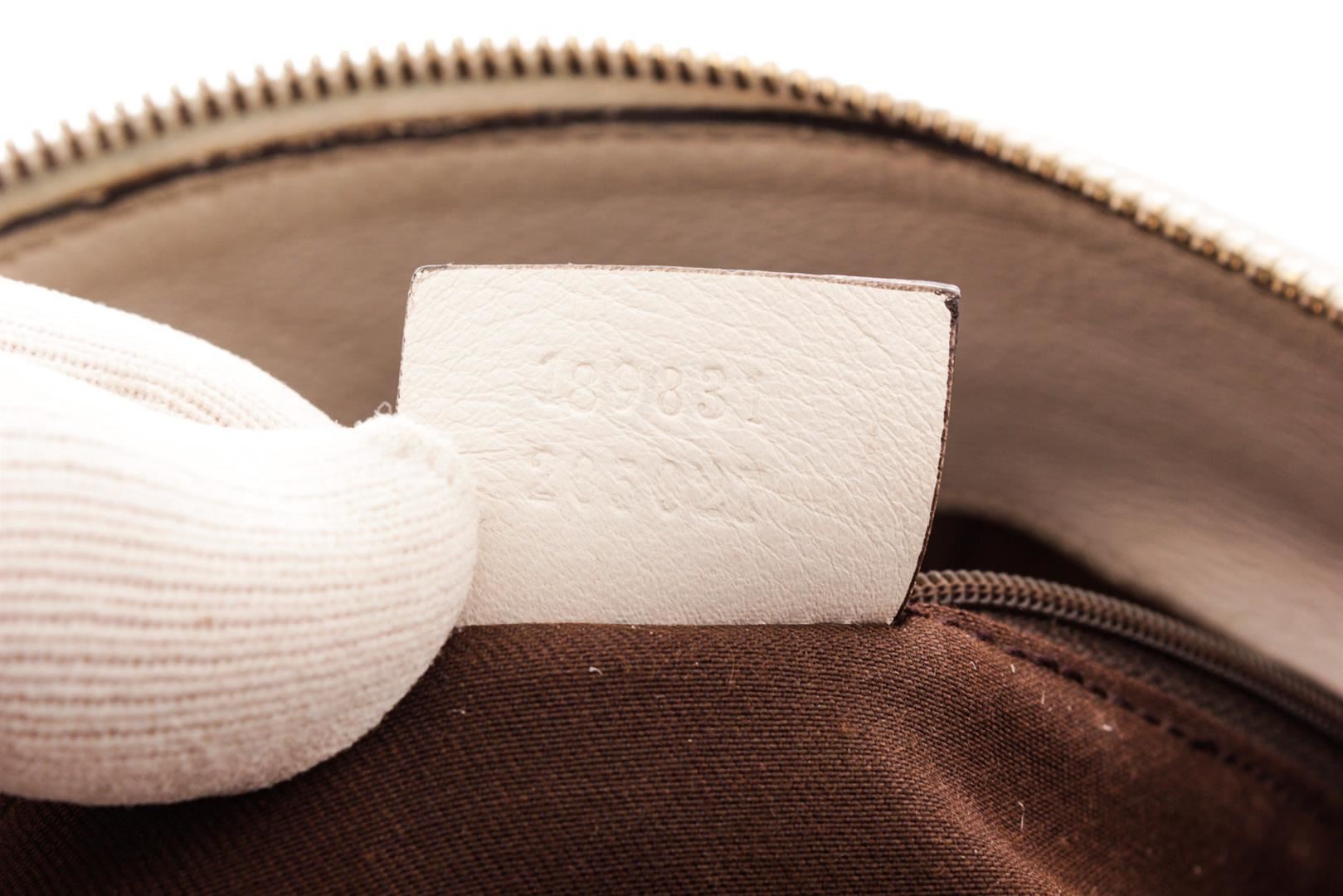 Gucci Brown Canvas D Tote Bag. All available information is listed in the description and shown in the photos. Gucci Brown Canvas D Tote Bag with gold-tone hardware, dual rolled top handles, gold-tone leather trim, black canvas lining, single slit pocket at interior wall and zip closure. CONDITION: Pre-Owned Good condition overall. Please refer to photographs.