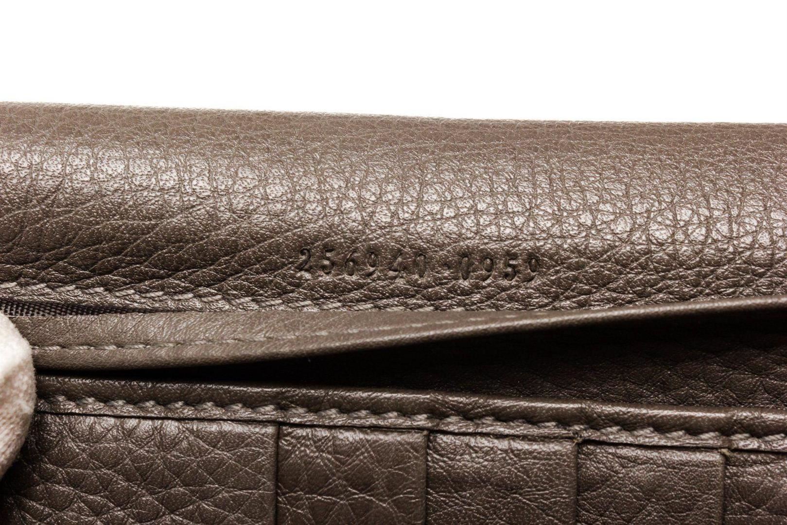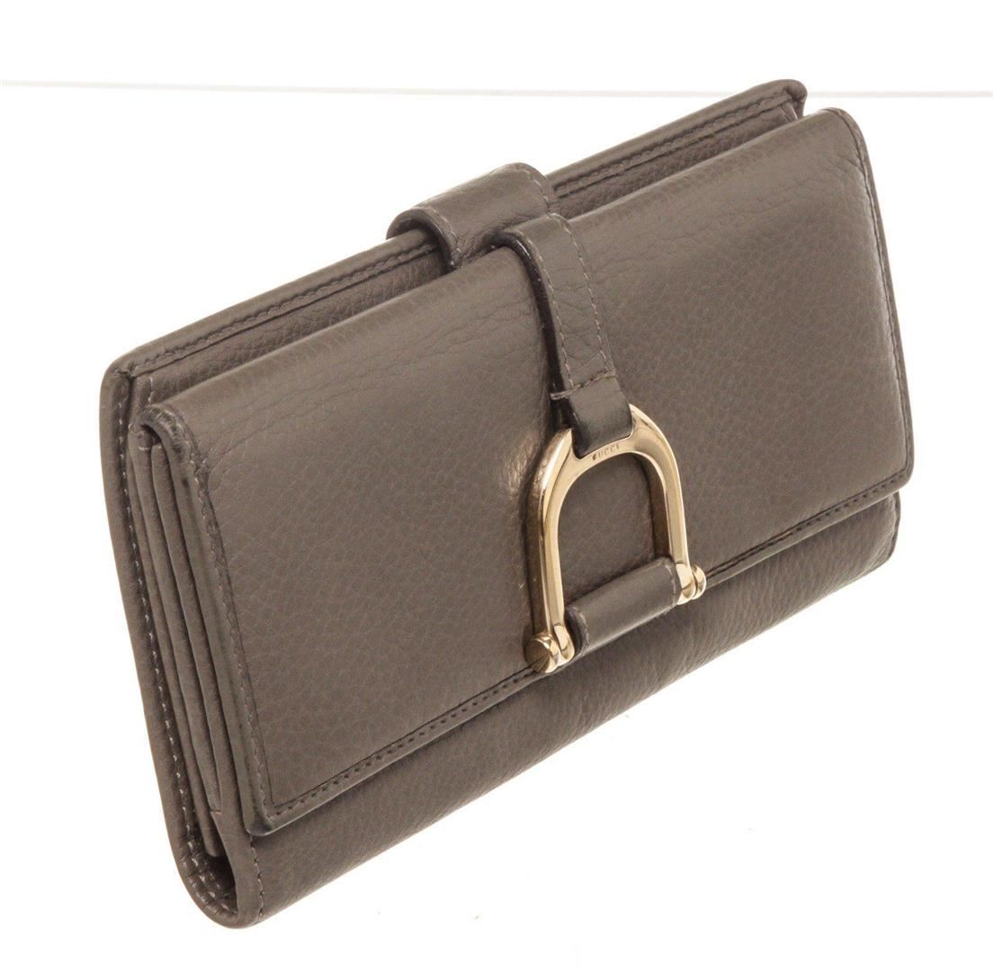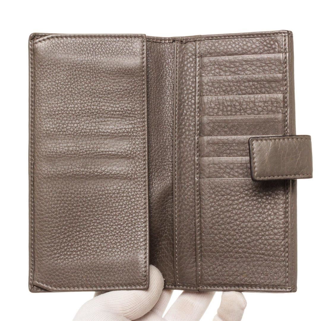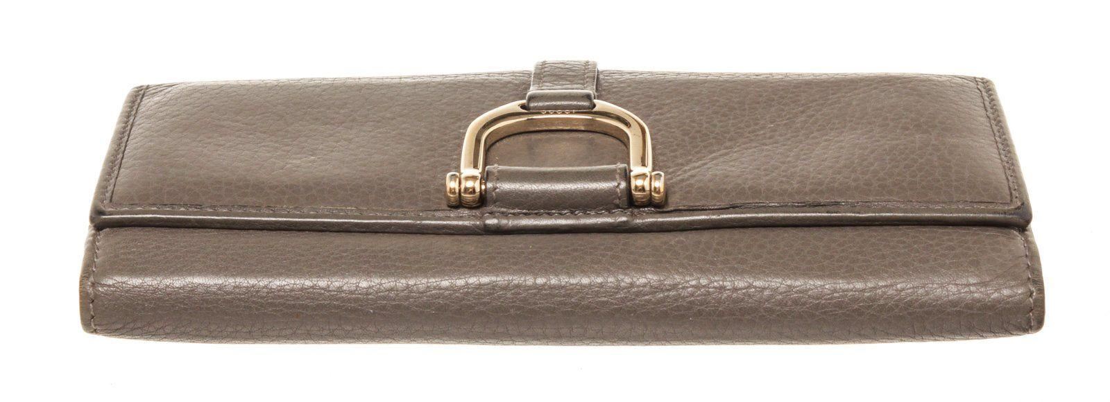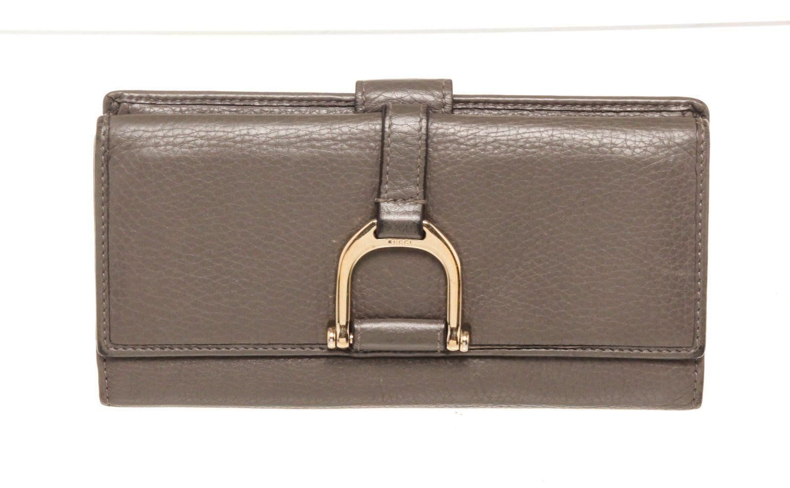 Gucci Brown Leather D Ring Wallet with material leather, gold-tone hardware, interior cardholder pockets and snap closure.
