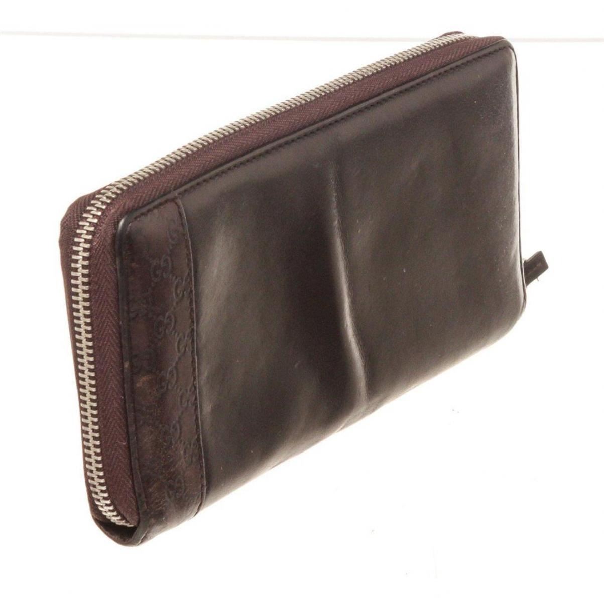 Gucci Brown Leather Zip Around Wallet with gold-tone hardware, trim leather, leather lining, interior three compartments pocket and zipper closure.