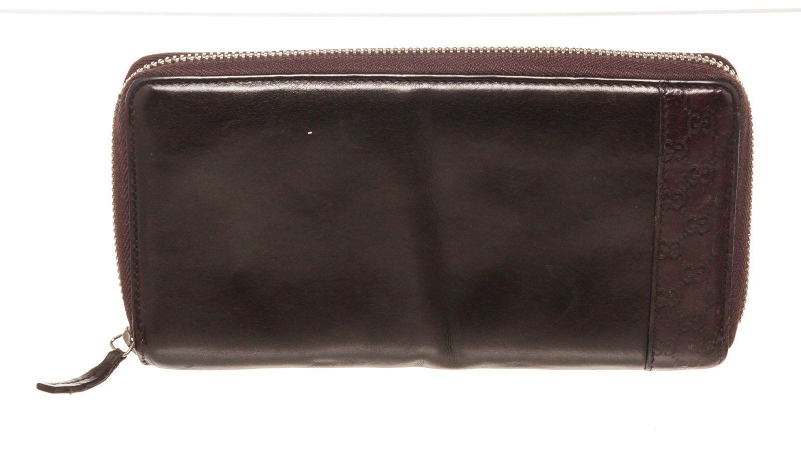 Gucci Brown Leather Zip Around Wallet with gold-tone hardware, trim leather, leather lining, interior three compartments pocket and zipper closure.