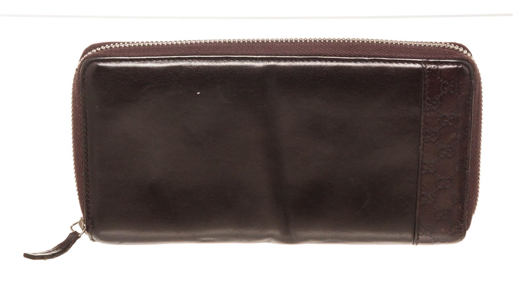 Gucci Brown Leather Zip Around Wallet. Please see photos and description for all available information! Gucci Brown Leather Zip Around Wallet with gold-tone hardware, trim leather, leather lining, interior three compartments pocket and zipper closure.