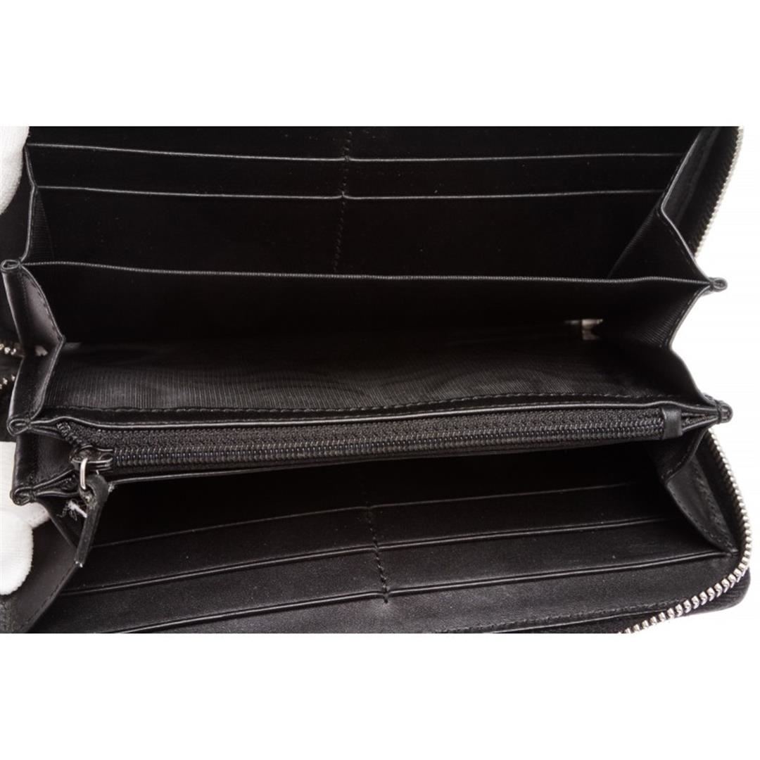 One Gucci Brown Monogram Coated Canvas Long Zippy Wallet. Crafted out of coated monogram canvas, zip around closure, and silver tone hardware. Inner black leather trim, fabric lining, and twelve cardots with a zip pocket middle divider. Item is pre-owned.
