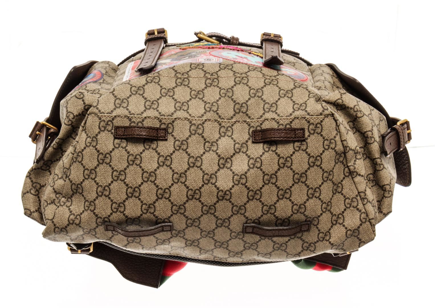 Gucci Brown Print GG Supereme Donald Duck Soft Backpack. All available information is listed in the description and shown in the photos. gucci brown print gg supereme donald duck soft backpack (HxWxD): 45cm x 40cm x 18cm / 17.71'' x 15.74'' x 7.08''