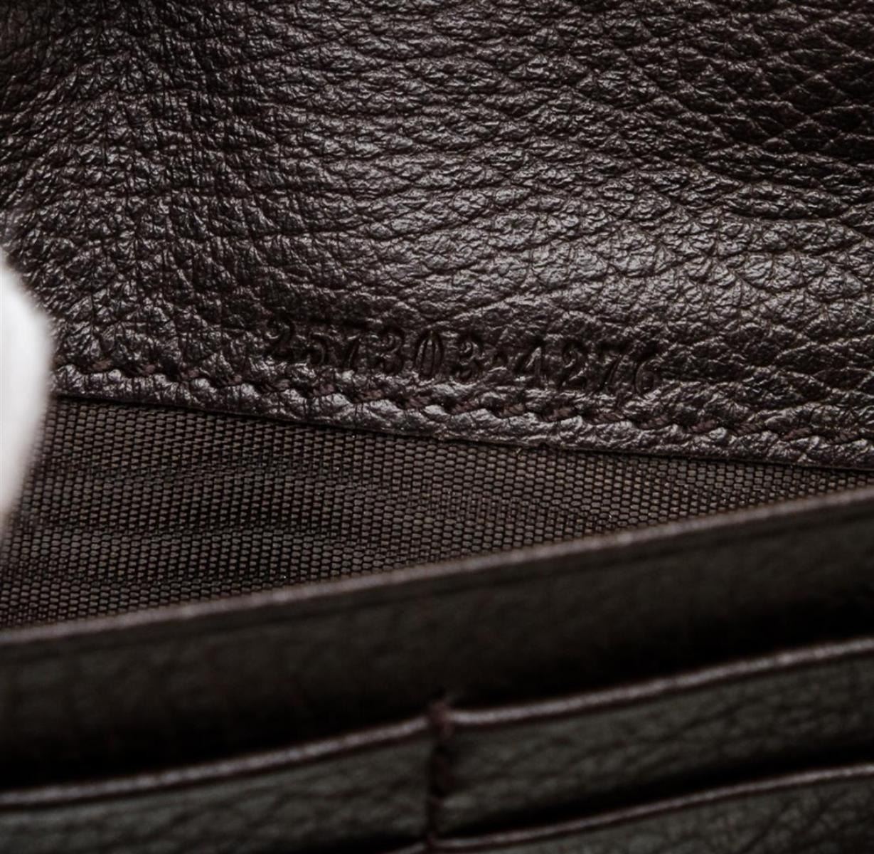 One Gucci Brown Python Trifold Wallet. Brown Python Leather Gucci Trifold Wallet featuring card holder slots, slots for bills and coin holder with snap closure. Gold-tone logo-embossed snap closure at front. MKR