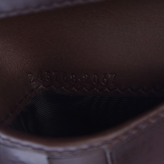 Dark Brown rich leather wallet with an iconic green and red canvas trim. The wallet opens to a matte leather interior with card slots, billfold, and a small snap coin pocket.