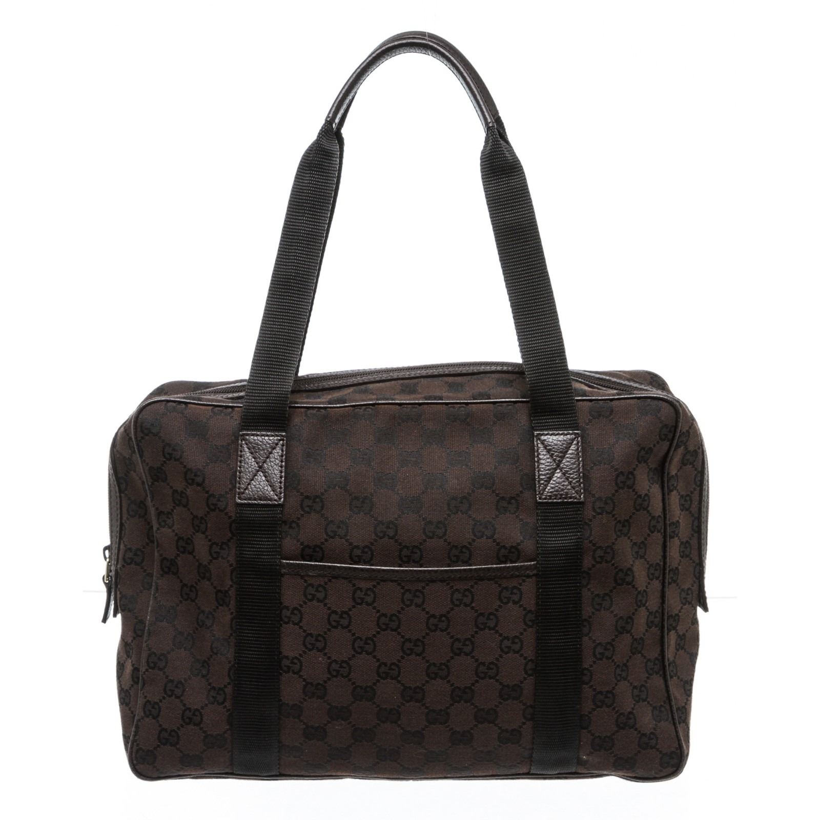 Style: Gucci Dark Brown GG Canvas Leather Laptop Bag