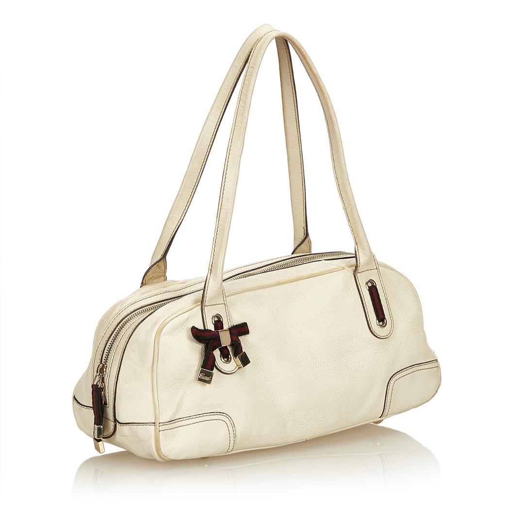 The Princy Shoulder Bag features a leather body, flat leather straps, top zip closure, and an interior zip pocket.