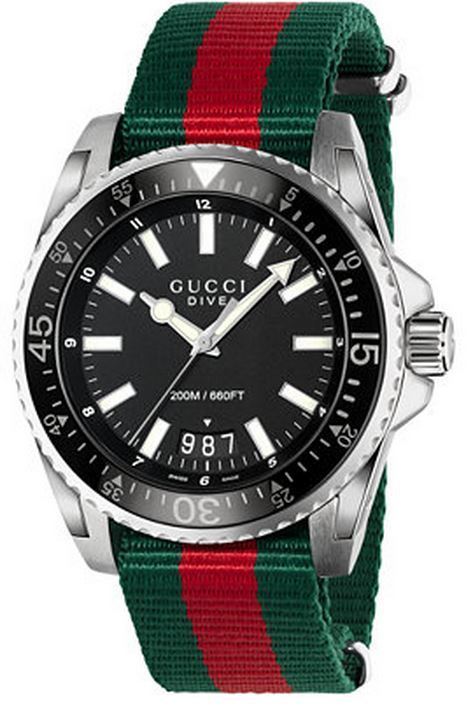 Model: YA136206 - CASE = [Material:Stainless Steel], [Case Diameter:45], [Bezel:Uni-Directional Rotating], [Case Back:Solid], [Water Resistant:200 Meters - 660 Feet], [Crystal:Scratch Resistant Sapphire], DIAL = [Color:Black], MOVEMENT = [Type:Quartz], [Crown:Push In], BAND = [Clasp:Tang], [Type:Green And Red Nylon], (Usually ships in 1 to 2 weeks.)