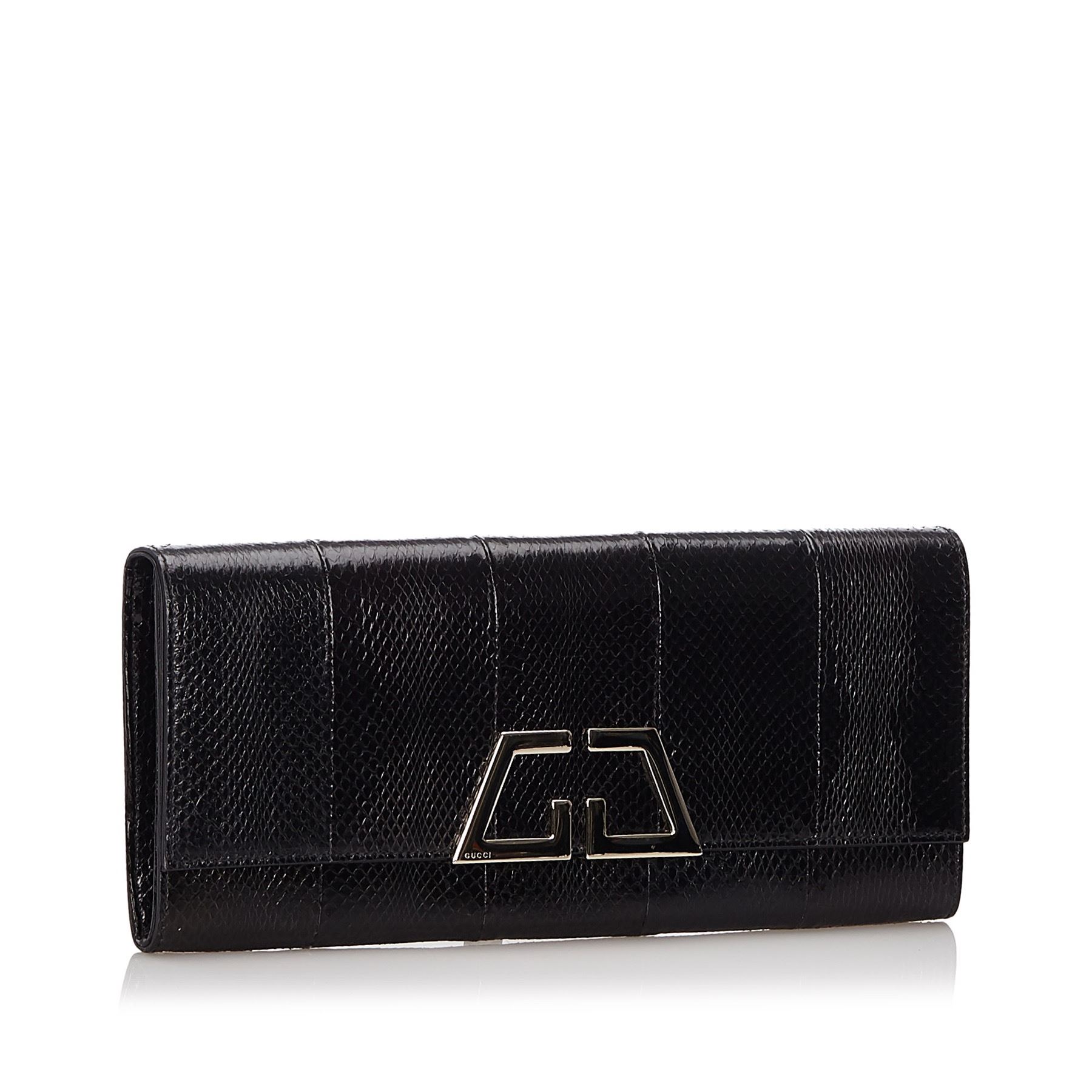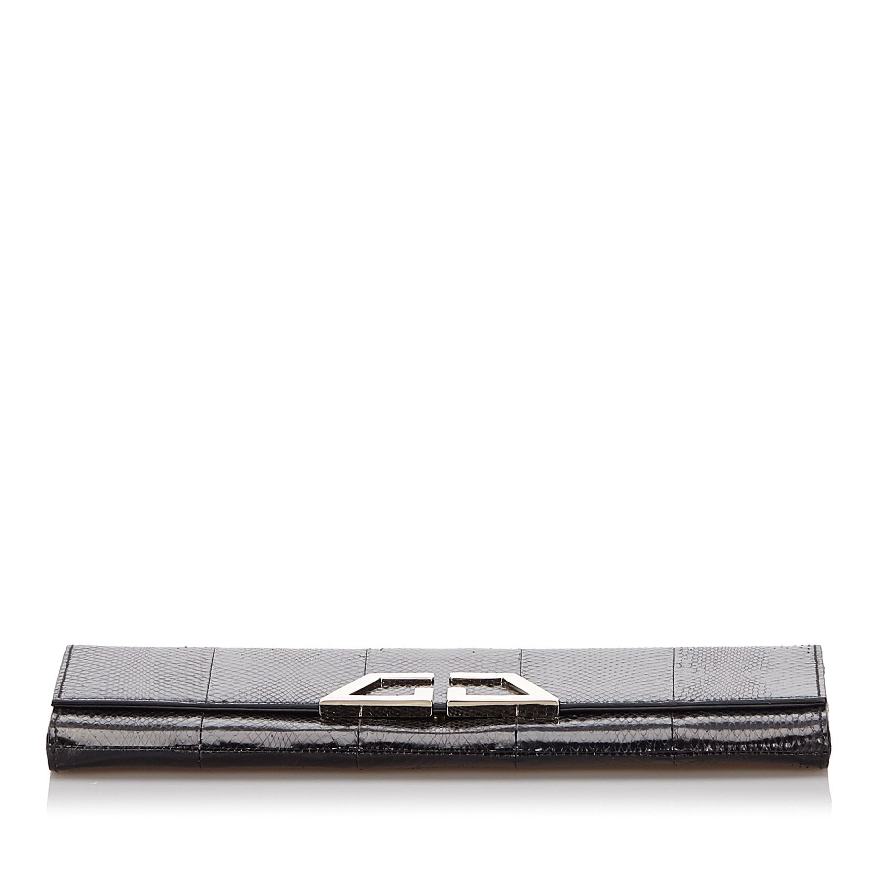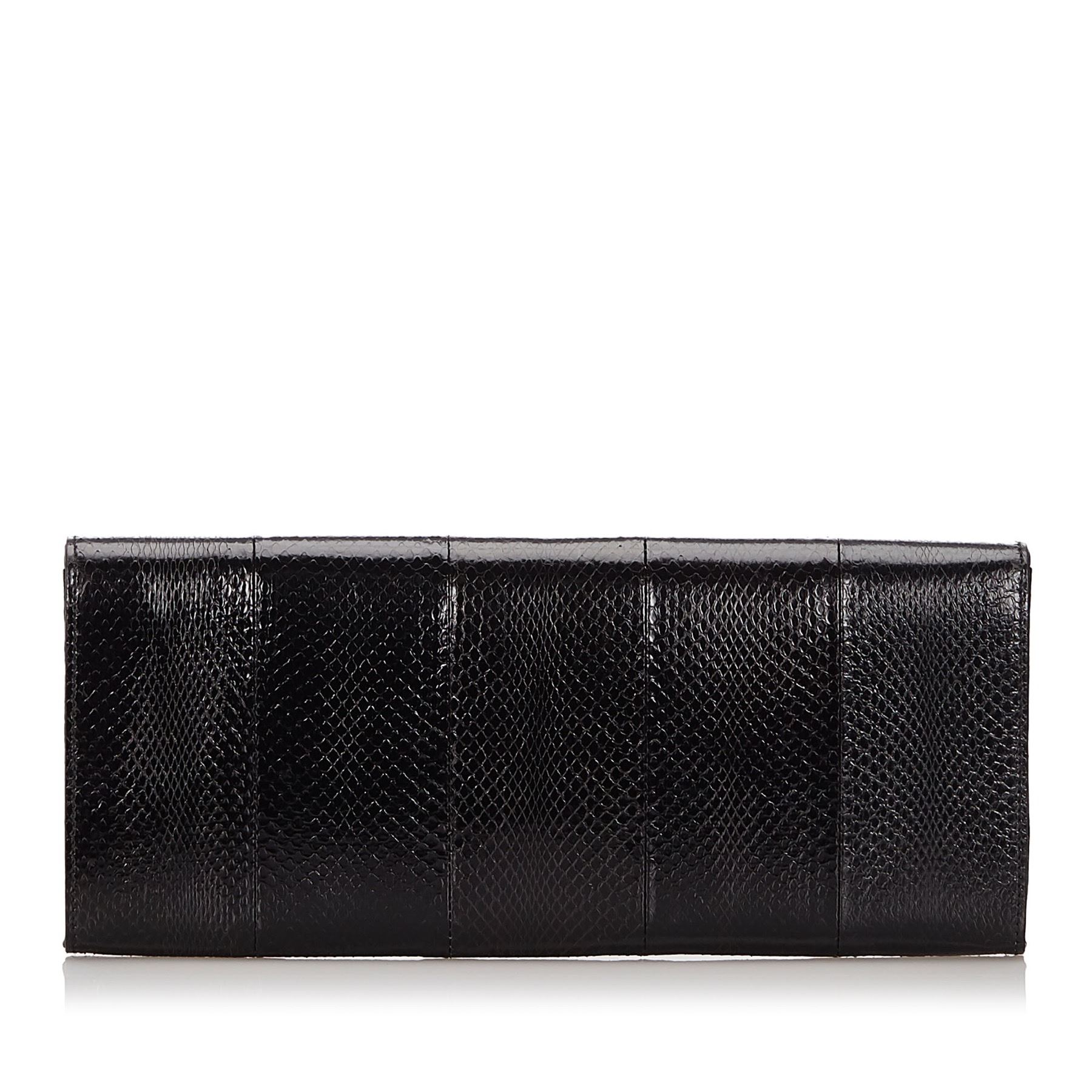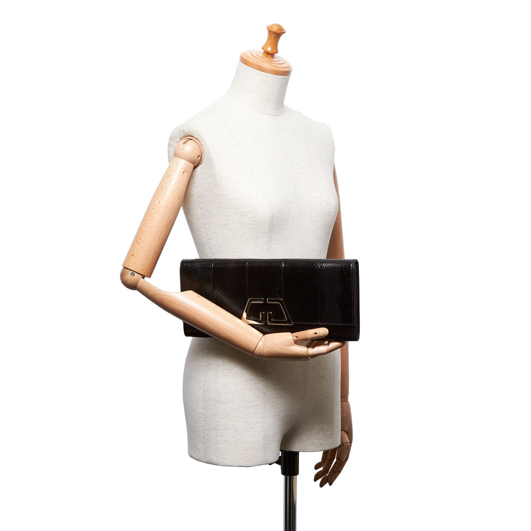 The G Night Clutch bag features a python leather body, a front flap with a magnetic closure, and an interior slip pocket. Leather x Python Leather Black Size: 15 x 32 x 2 Card: NO Made in: ITALY