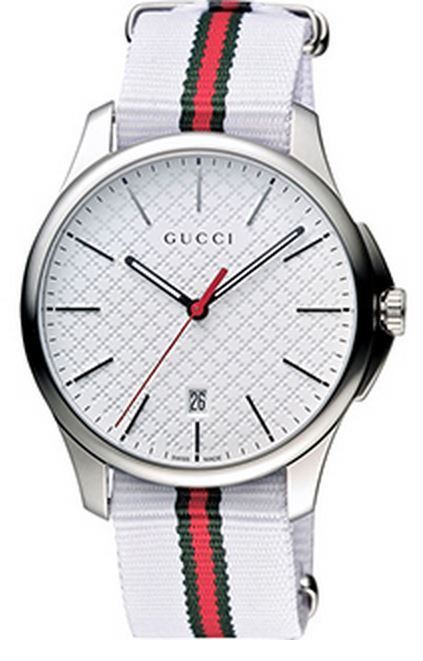 Model: YA126322 - CASE = [Material:Stainless Steel], [Case Diameter:40], [Bezel:Fixed], [Case Back:Solid], [Water Resistant:50 Meters - 165 Feet], [Crystal:Scratch Resistant Sapphire], DIAL = [Color:White], MOVEMENT = [Type:Quartz], [Crown:Push In], BAND = [Clasp:Tang], [Type:White, Green and Red Nylon], (In Stock - Ready to ship.)