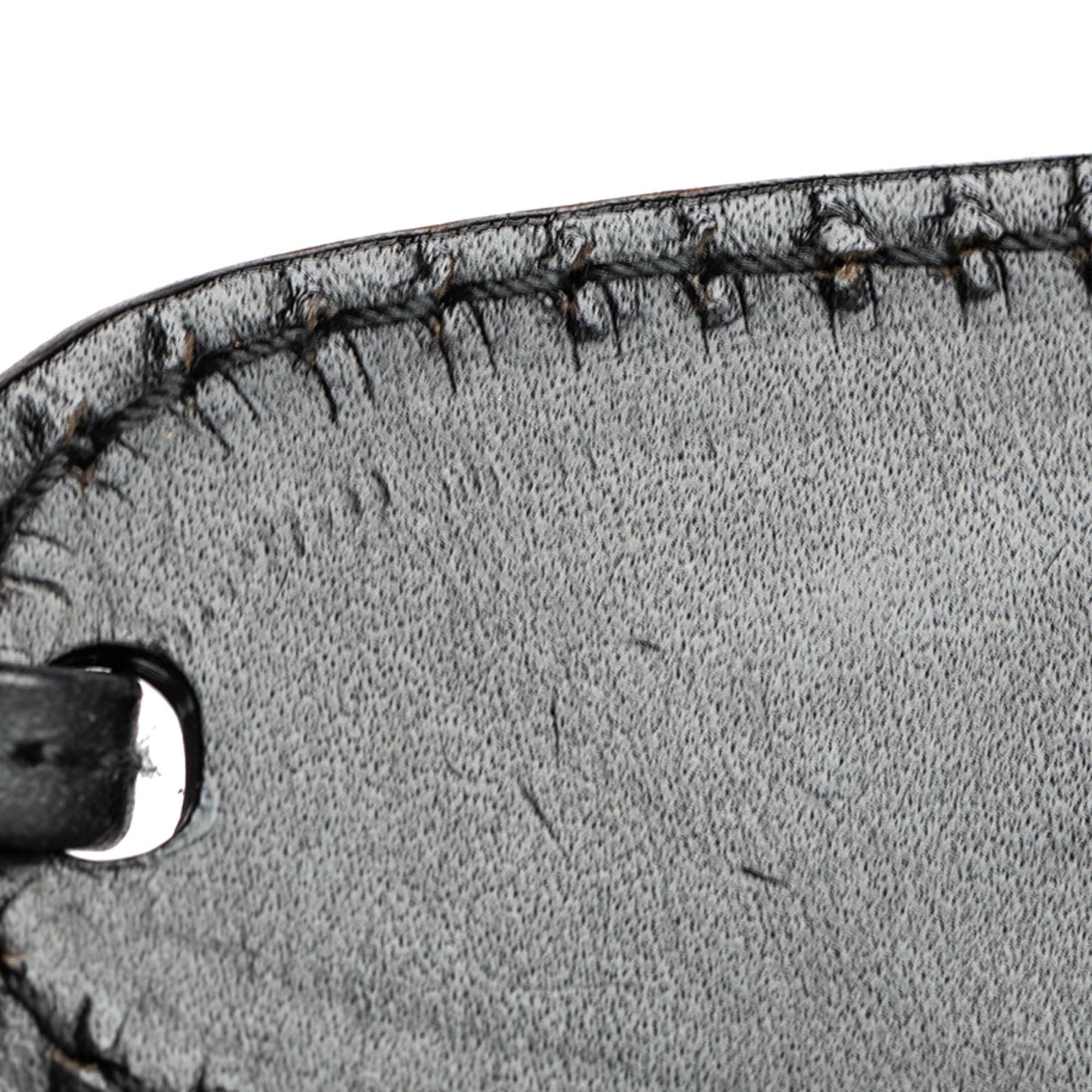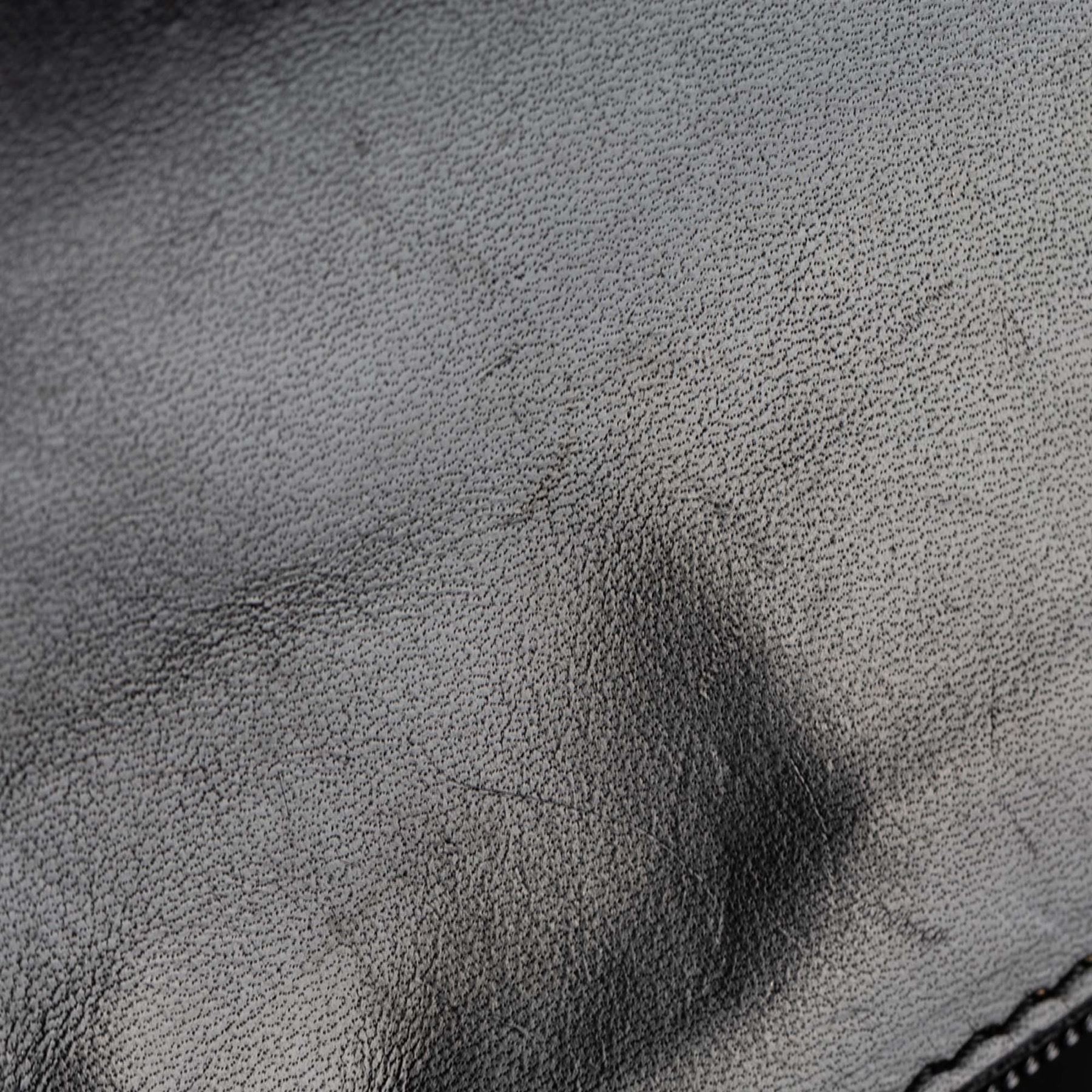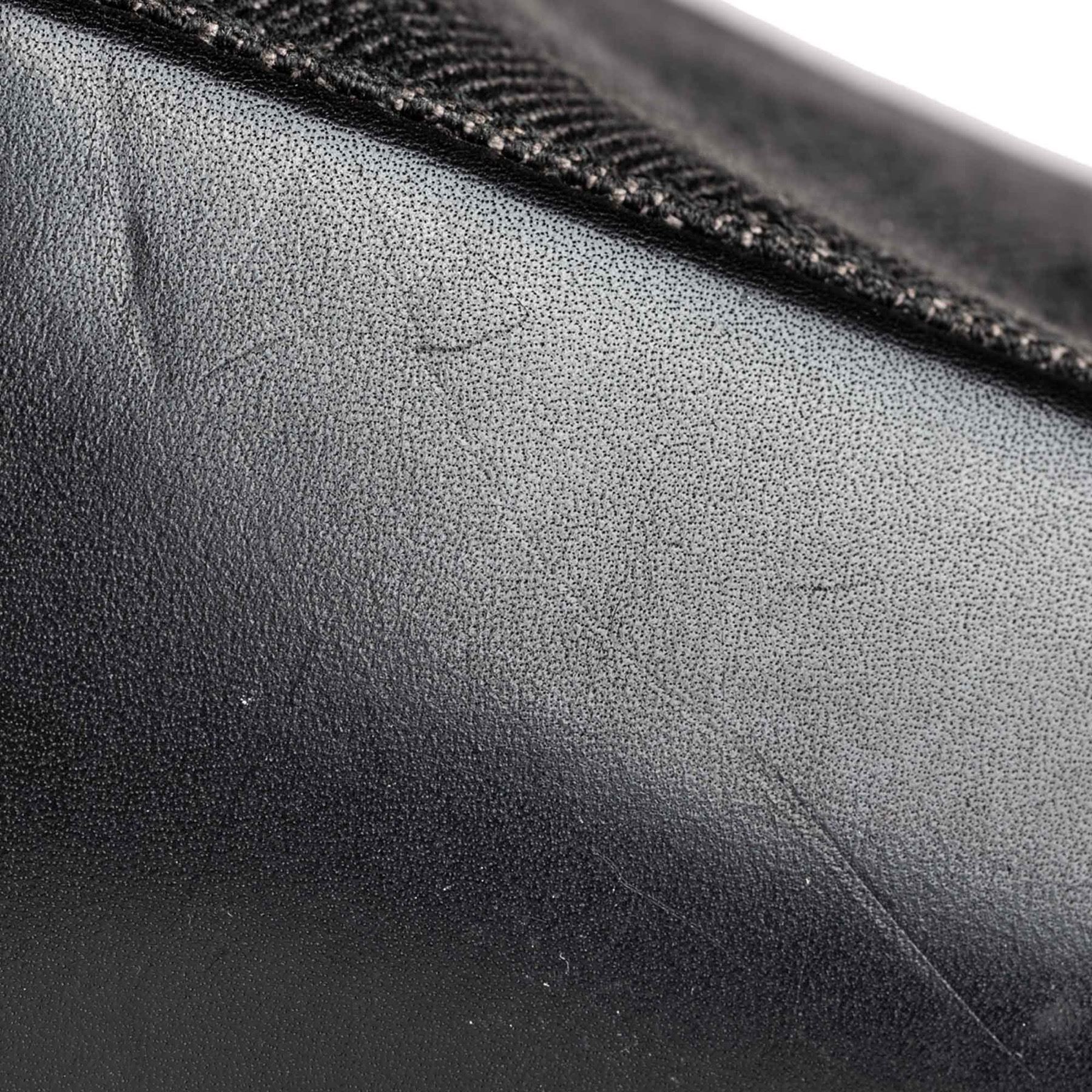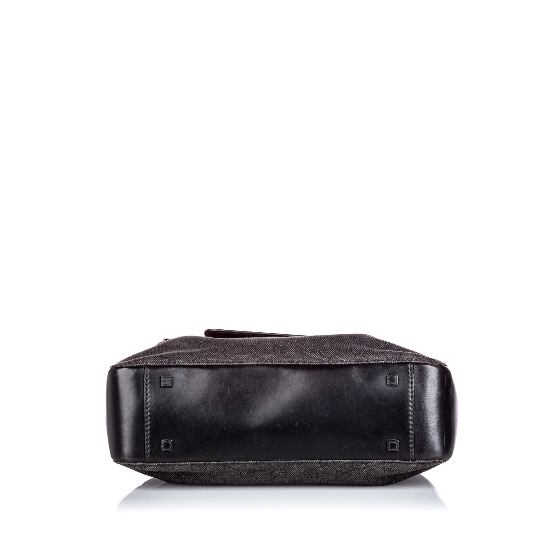 This tote bag features a canvas body, flat leather straps, and an open top with magnetic closure. Fabric x Canvas x Leather x Others Black Exterior front is discolored. Exterior back is discolored. Exterior bottom is scratched. Exterior handle is ripped and scratched. Exterior side is scratched. Size: 21 x 30 x 9 Card: NO Made in: ITALY