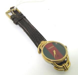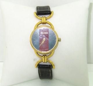 Gucci Gold Plated Leather Strap Watch.The total watch's weight is 16.8 grams.The measurement of watch head is 22 x 22 mm and 5 mm thick.The length of watch: 8.25".Leather Strap is 10 mm wide.water Resistant.swiss made