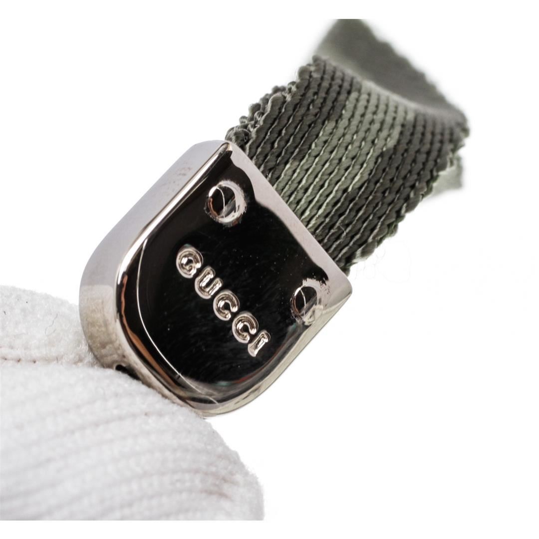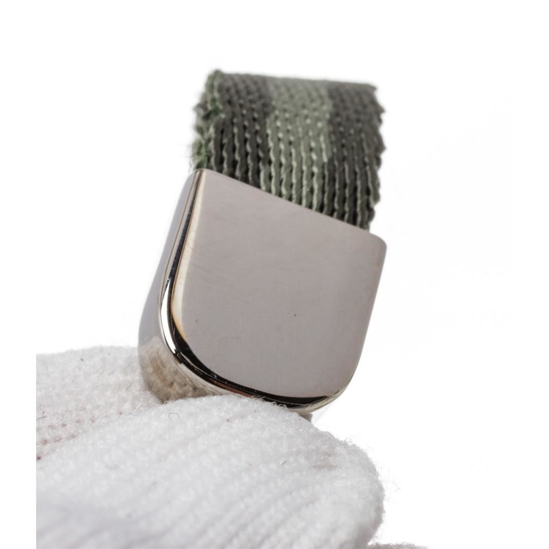 Crafted out of silver-tone hardware and green nylon. Dimensions = L:6"/15.24cm. Item is pre-owned.