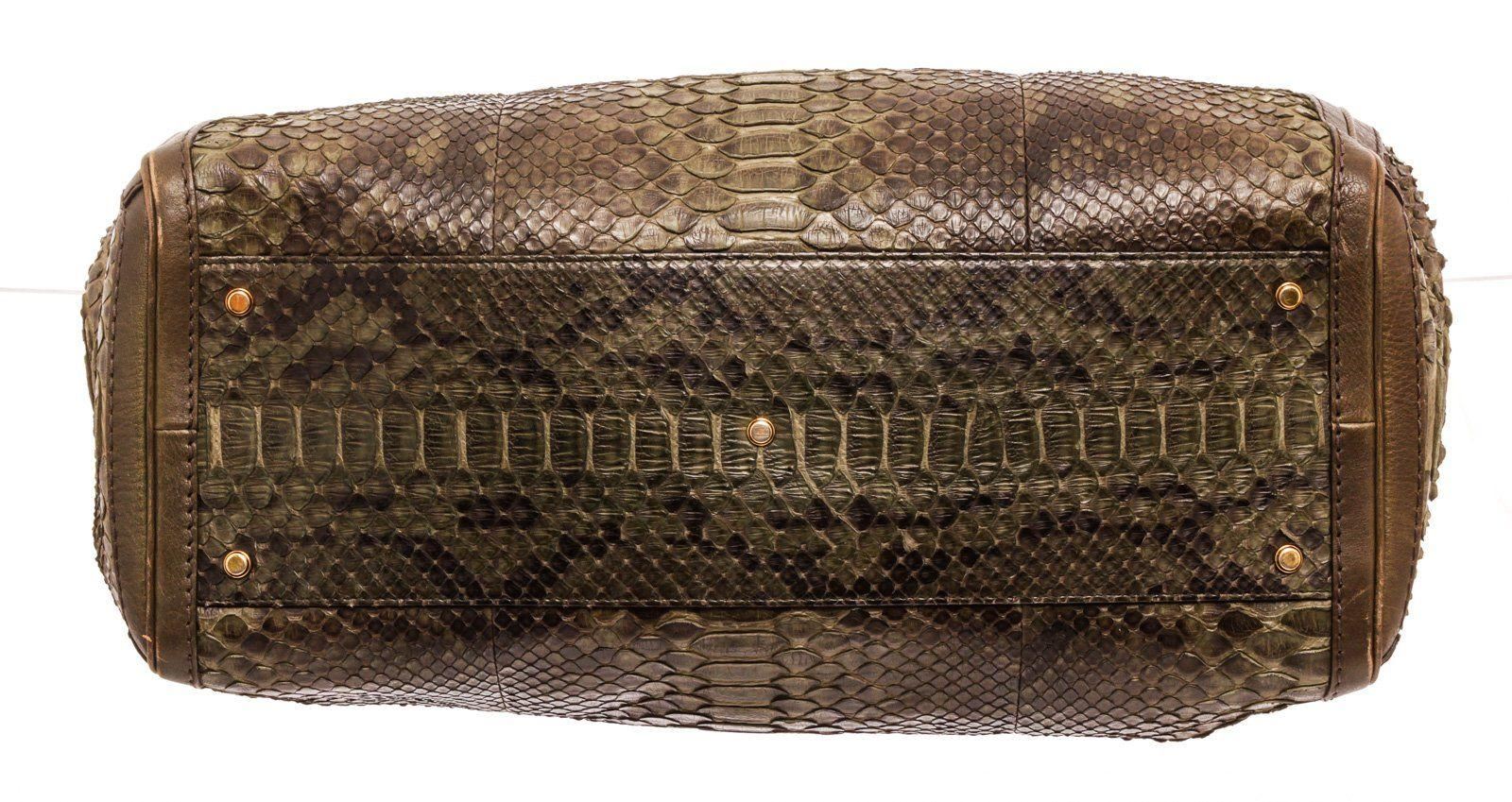 Gucci Green Python GG Running Tote Bag with gold-tone hardware, trim leather, interior zip pockets, leather lining, dual top handle and snap closure. MEASUREMENTS: Length 12 in / 30 cm Width 17 in / 43 cm Height 7.5 in / 19 cm Condition: Pre-Owned Good overall, please see photographs for detail.