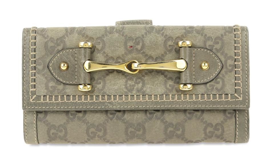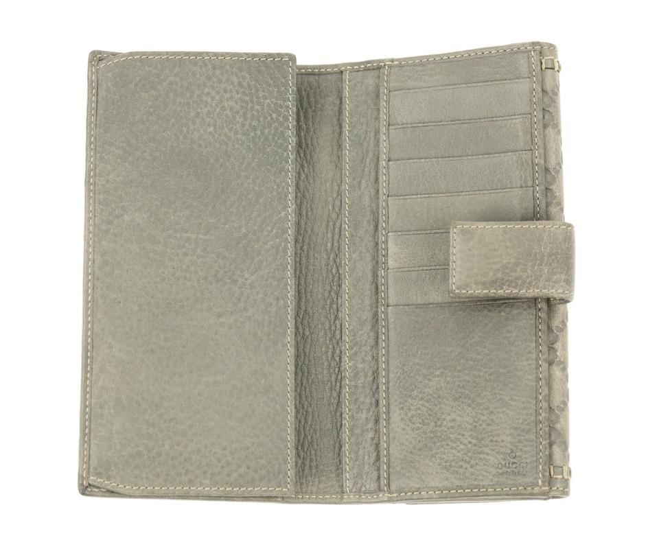 One Gucci Grey Guccissima Hook Wallet. Gucci Guccissima Hook Wallet Snap Closure Gold-Tone Hardware Material - Leather Card Count Large Bill Compartments Slip Pockets Exterior Snap Closure Pocket Made in Italy