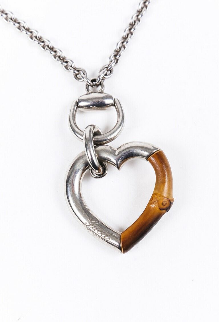 Gucci sterling silver chain necklace features a bamboo accented heart pendant and a lobster clasp fastening.