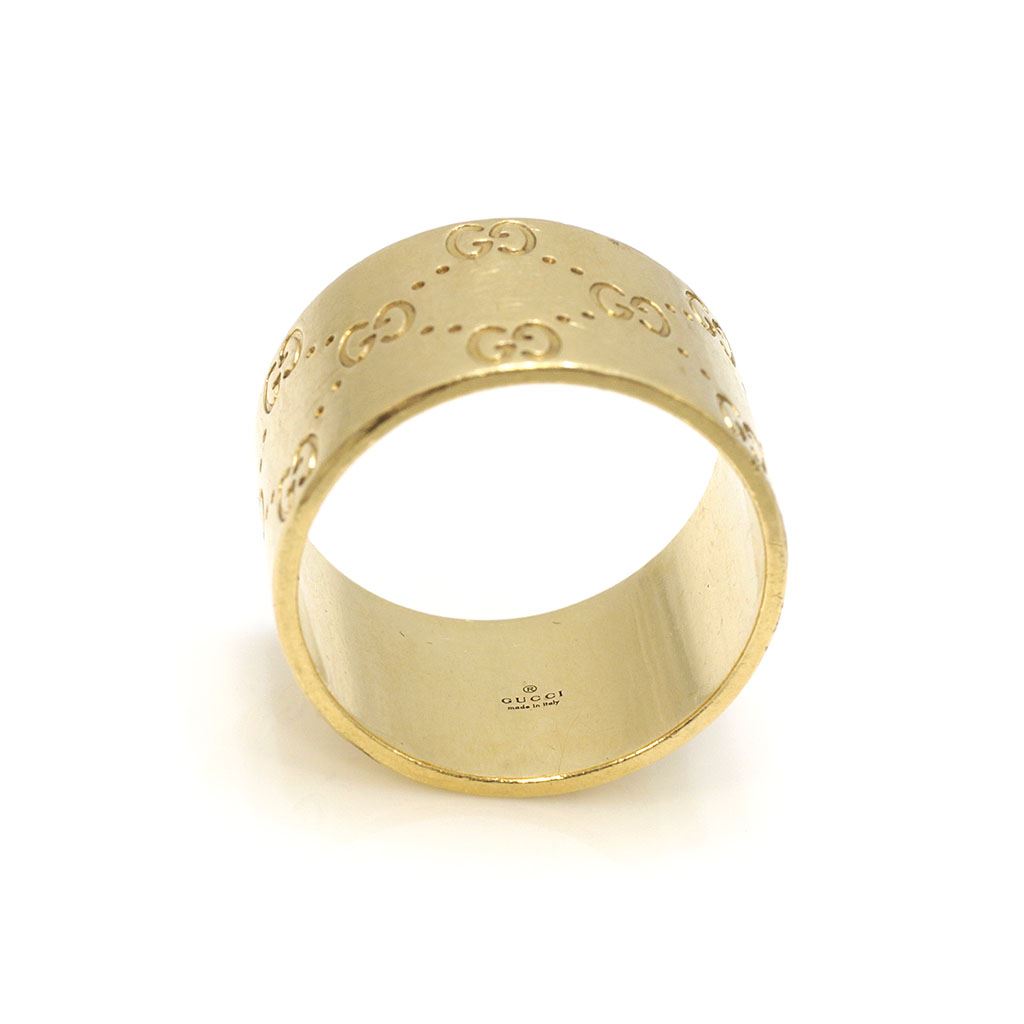 Gucci Icon 18k Gold Wide Band Ring, Italy. Signed: Gucci