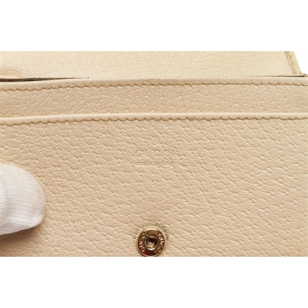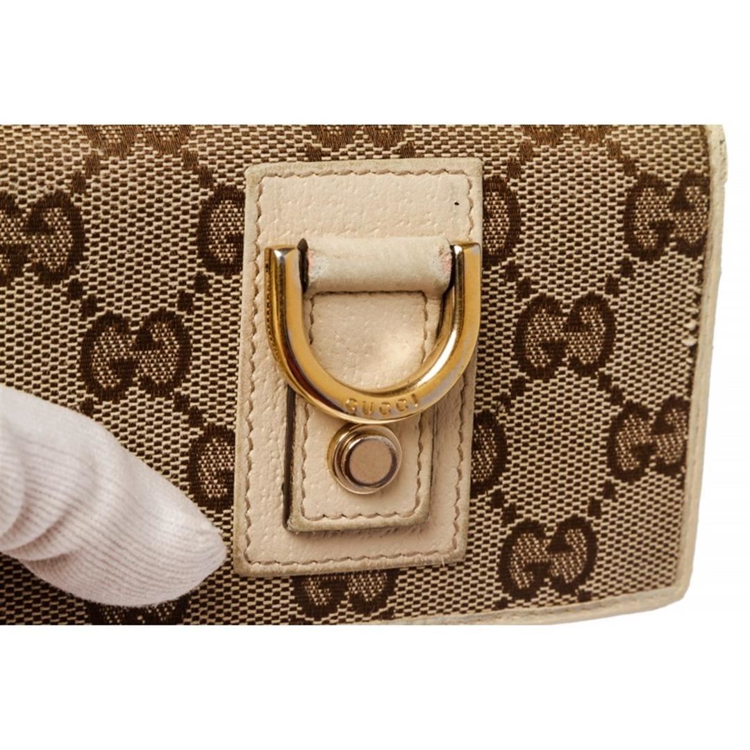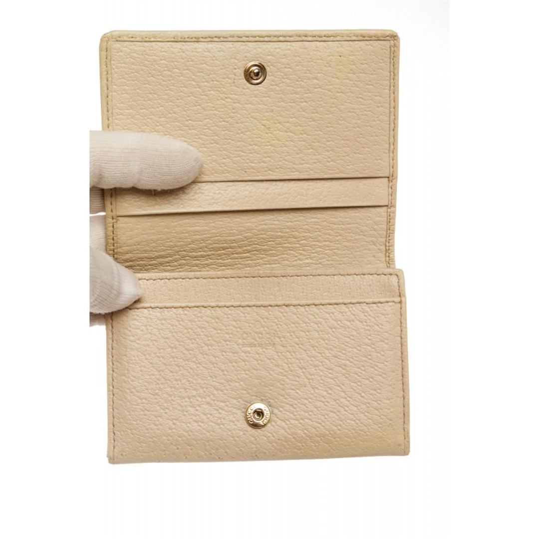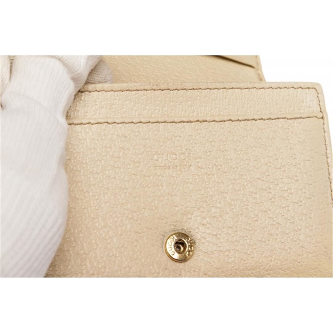 One Gucci Ivory Brown Canvas Monogram Bi-fold Wallet. Gucci ivory brown canvas leather monogram bi-fold wallet contains zipper coin pouch, four credit cardip pockets and two compartment. Exterior contains gold-tone D-ring embellishment.