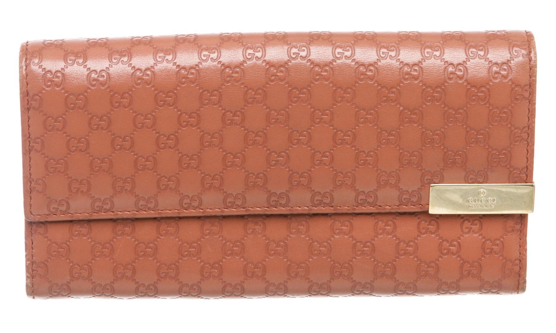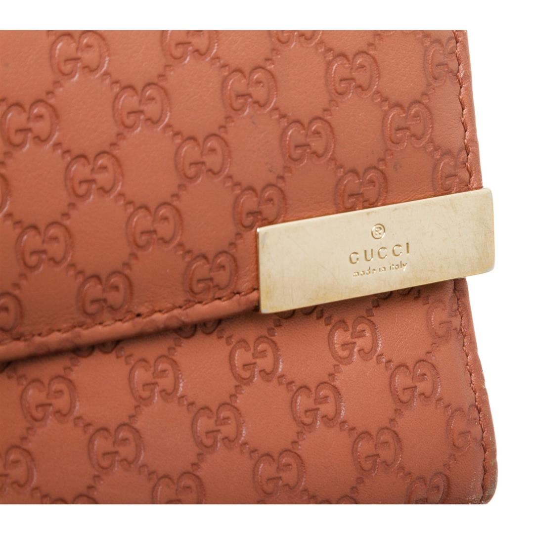 Gucci Mauve Microguccissima leather long wallet with gold-tone hardware, tonal leather lining, center zip pocket, three bill pockets, twelve card slots, flap with snap closure.zip around closure. Authentic.