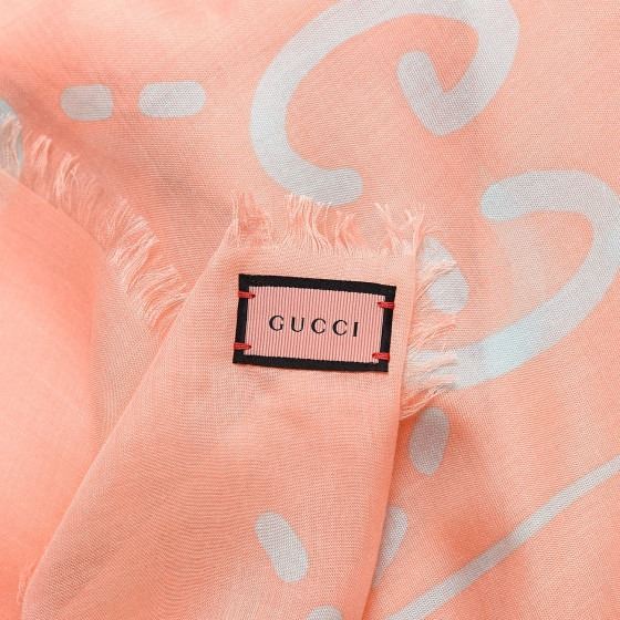Orange scarf is crafted of 85% modal and 15% silk. It features a beautiful combination of red GG monogram on a light orange background with a fringe border.
