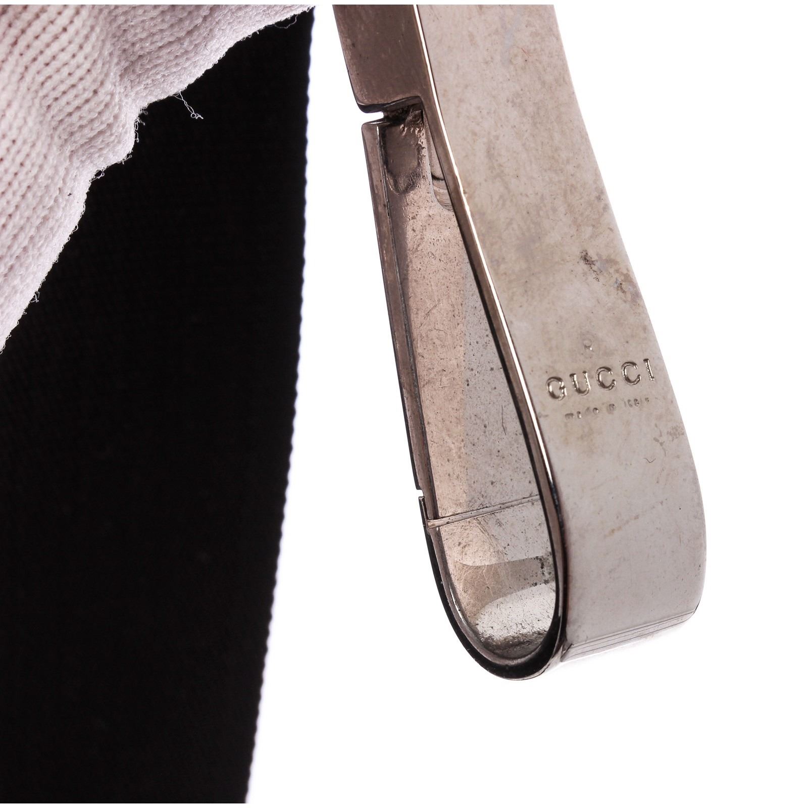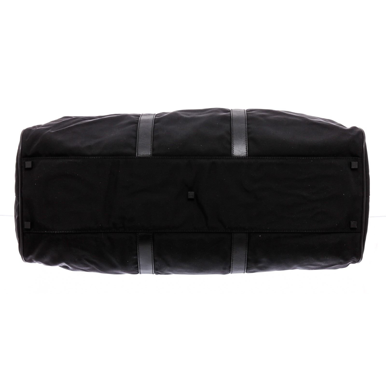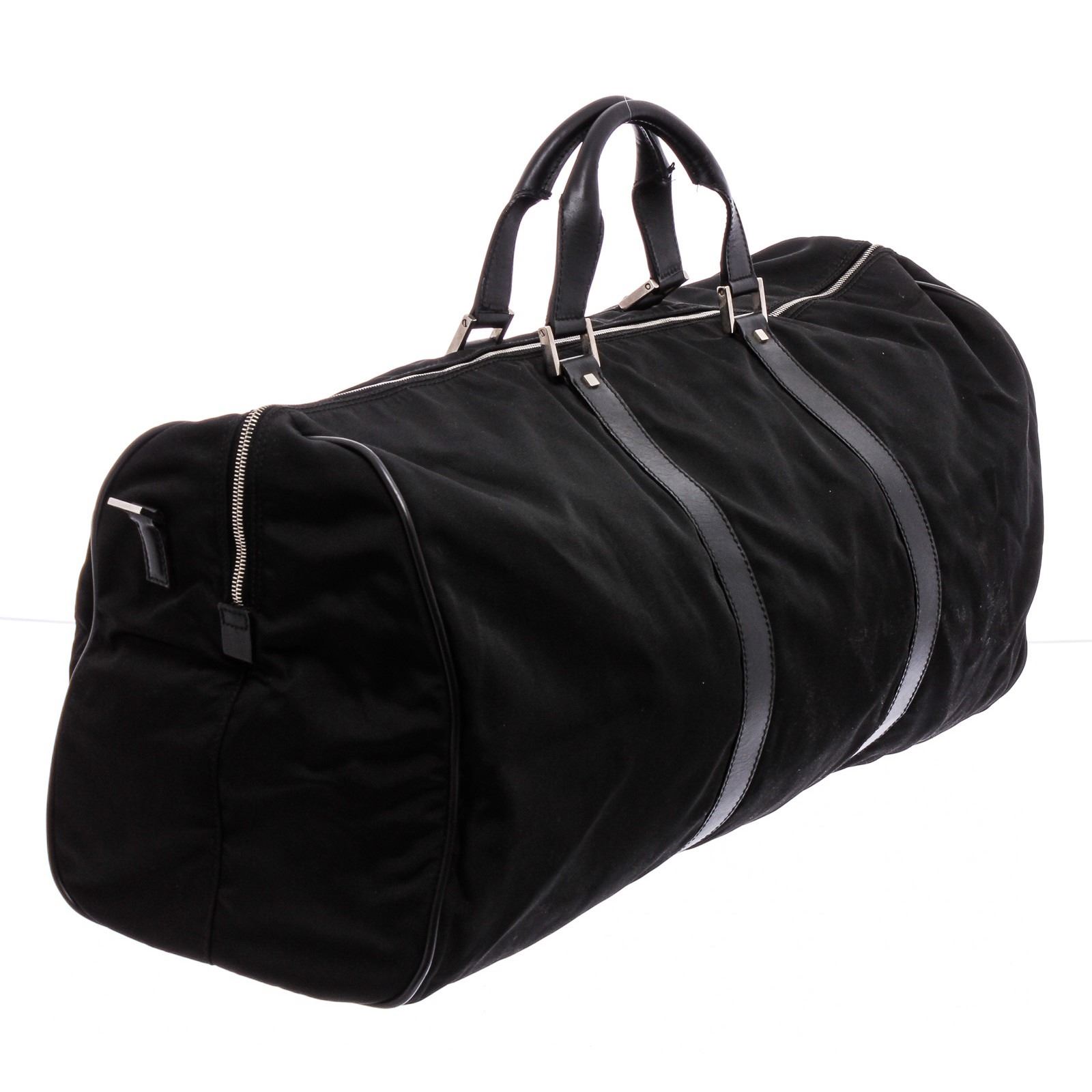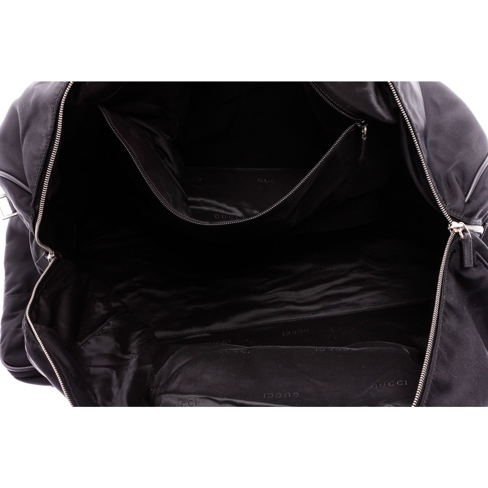Black nylon and leather Gucci Boston 2way duffle bag with silver-tone hardware, detachable flat shoulder strap, tonal nylon logo lining, one zipper pocket at interior wall and overall two way zipper closure