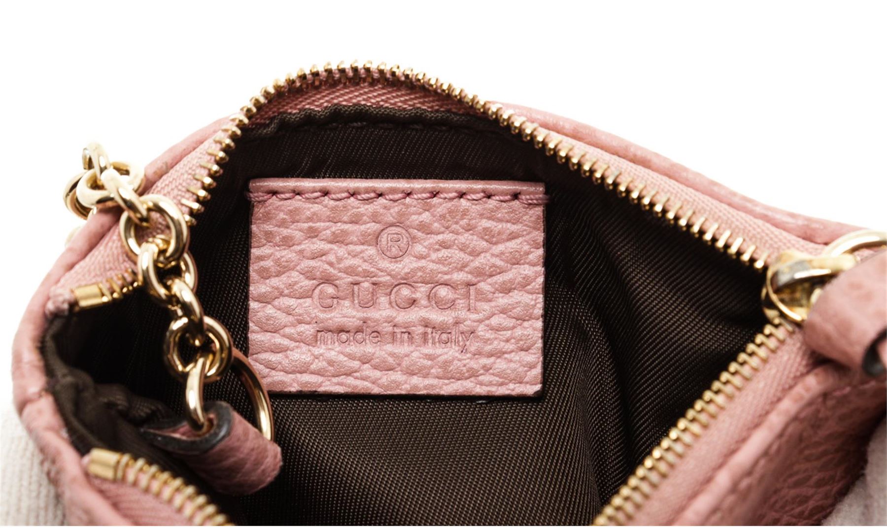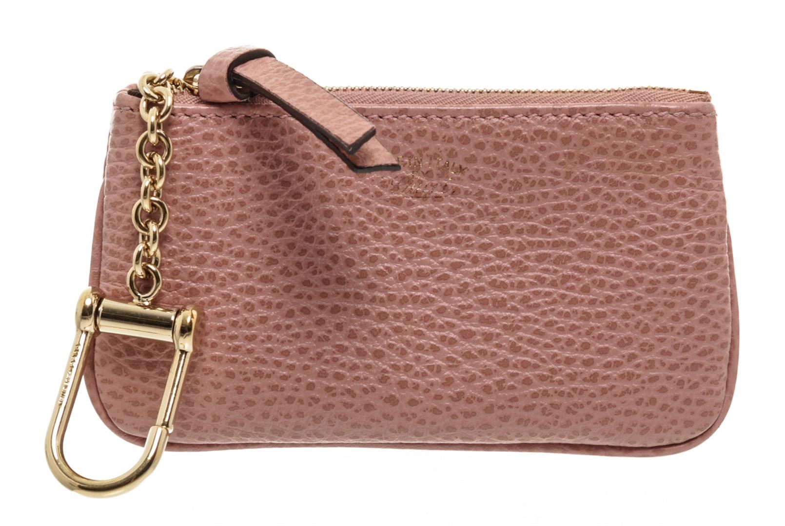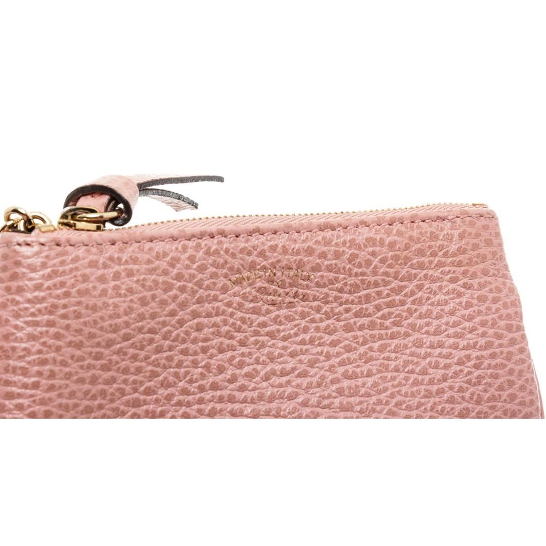 Crafted out of pink pebbled leather, gold-tone hardware, and zip top closure. Authentic.
