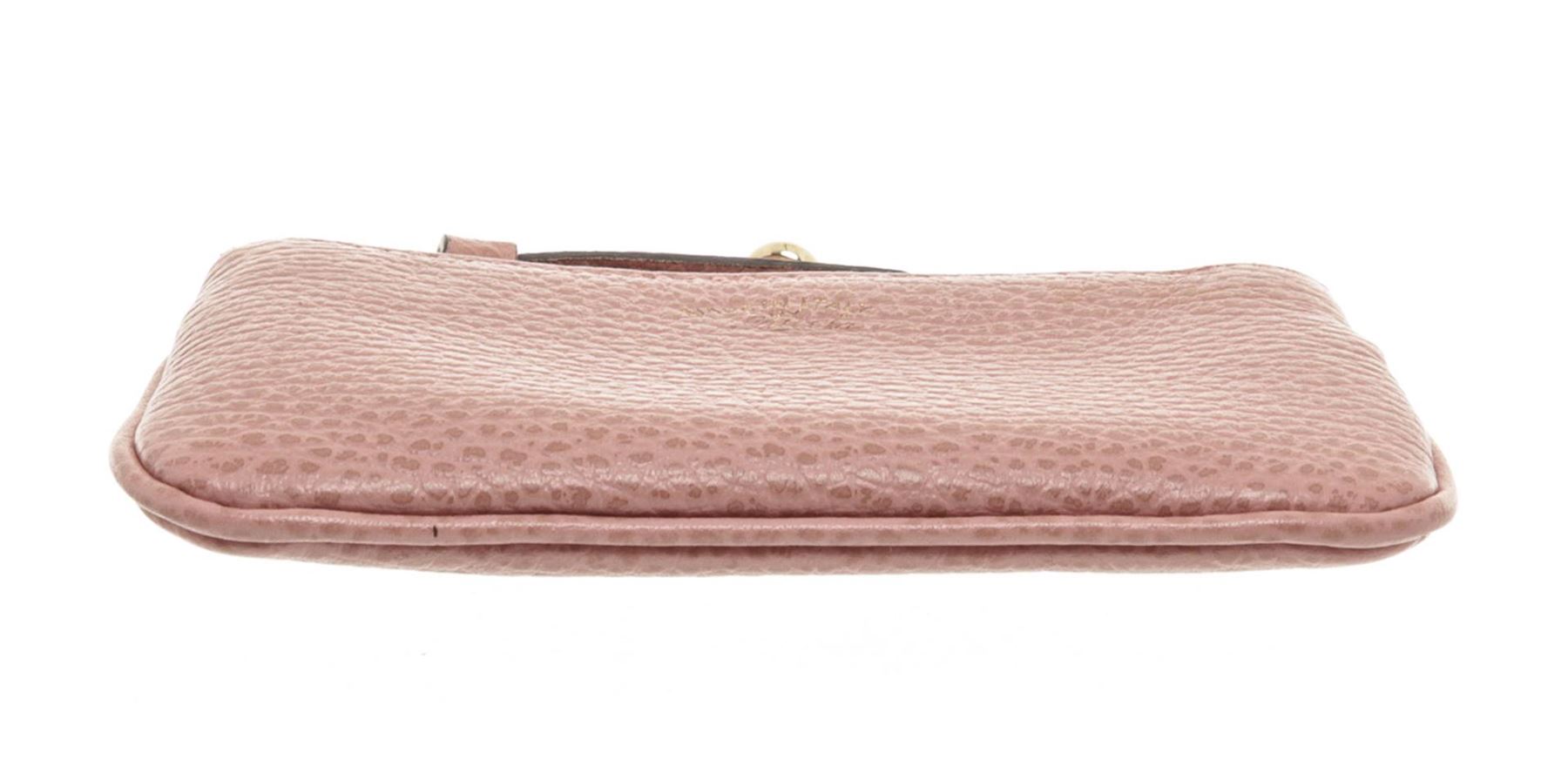 Crafted out of pink pebbled leather, gold-tone hardware, and zip top closure. Authentic.