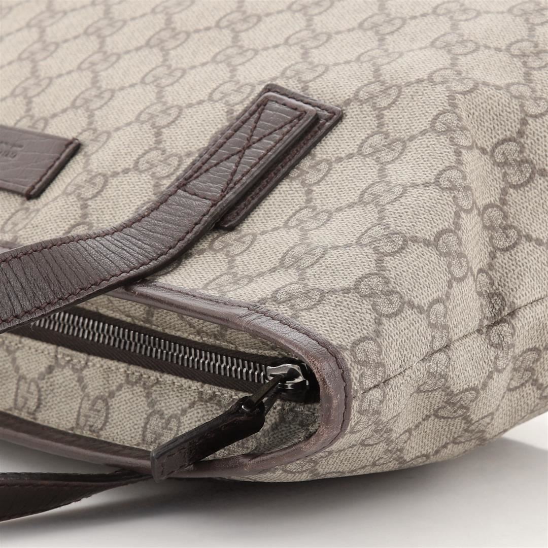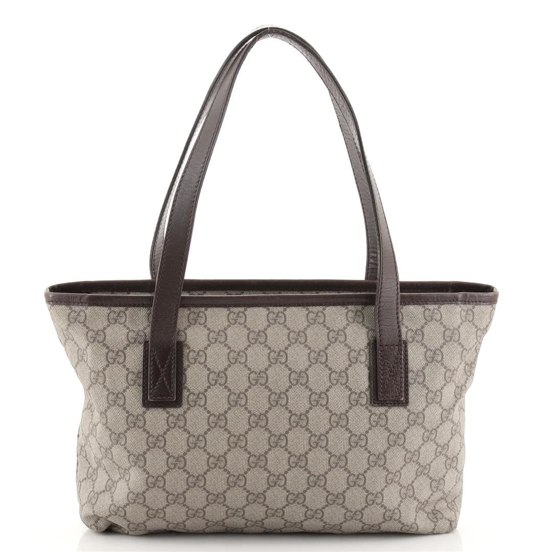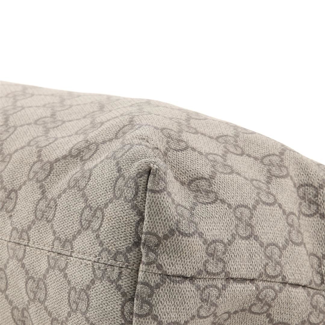 One Gucci Plus Tote GG Coated Canvas Medium. Item is sold AS-IS. Please check photos and descriptions for all available details. Gucci Plus Tote GG Coated Canvas Medium. Nick on base, wear on base corners, opening trim, handles and in interior. Heavy splitting on handle wax edges, discoloration on leather trims, handles and in interior, marks in interior, scratches on hardware.