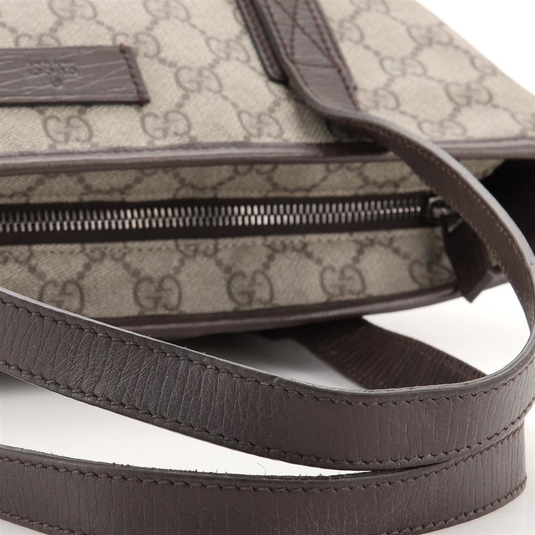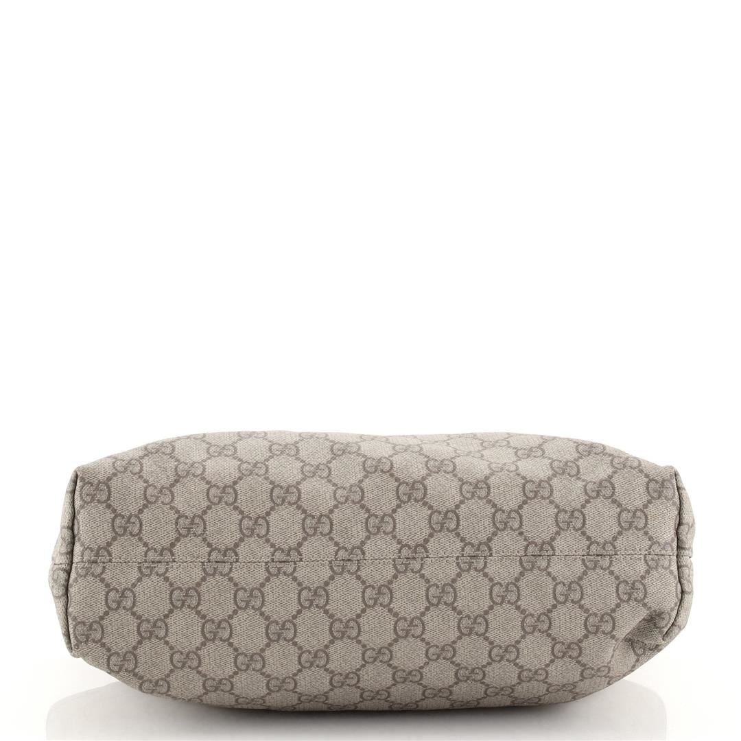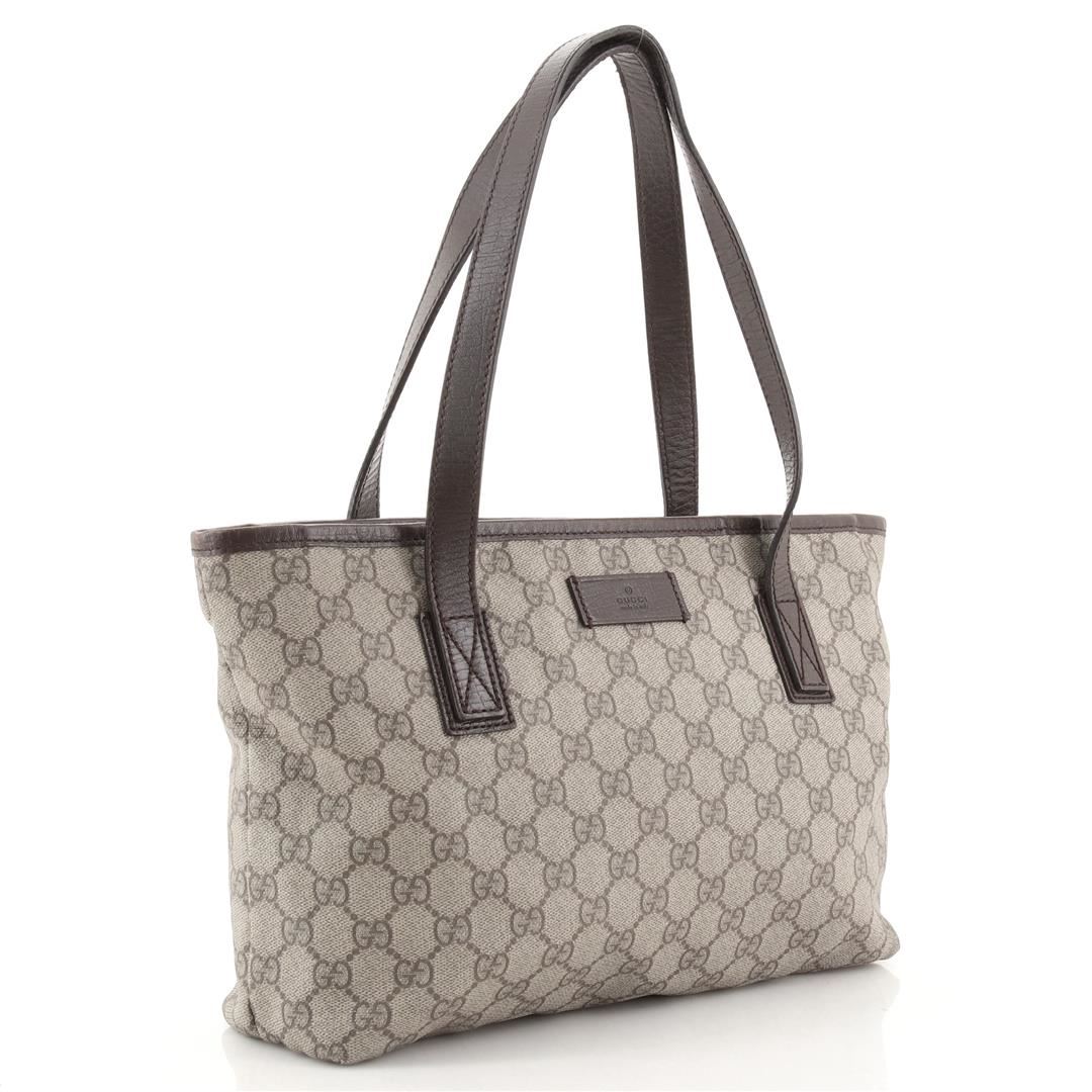 One Gucci Plus Tote GG Coated Canvas Medium. Item is sold AS-IS. Please check photos and descriptions for all available details. Gucci Plus Tote GG Coated Canvas Medium. Nick on base, wear on base corners, opening trim, handles and in interior. Heavy splitting on handle wax edges, discoloration on leather trims, handles and in interior, marks in interior, scratches on hardware.