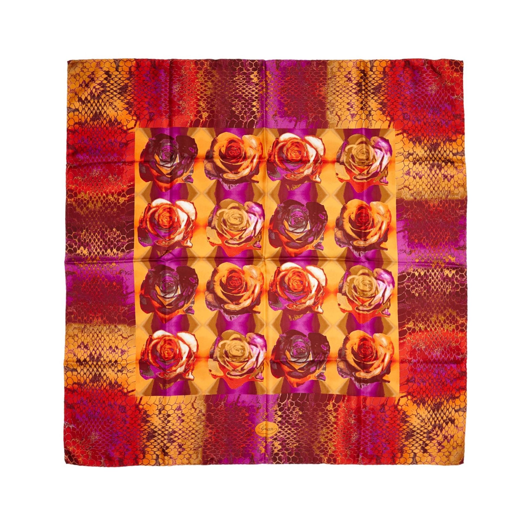 This scarf features a print on 100% silk. Fabric x Silk Orange x Multi Size: 84.5 x 86 x 0 Card: NO Made in: Italy