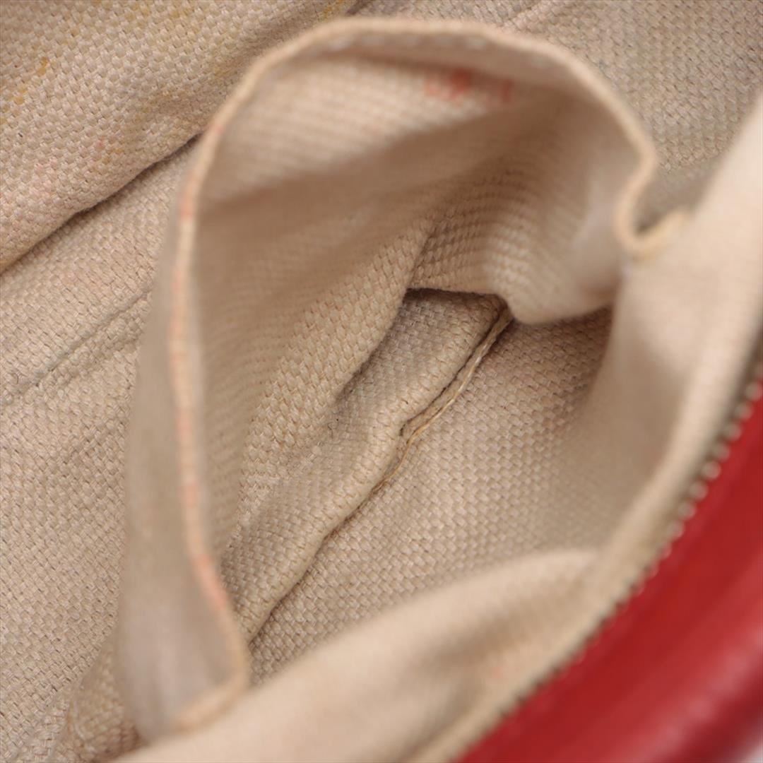 Red leather Gucci Soho Disco crossbody bag with gold-tone hardware, single adjustable flat shoulder strap, natural canvas lining, dual slip pockets at interior walls, and tassel-embellished zip closure at top. 8" x 3" x 6" Handle Drop: 22" / 20.3cm x 7