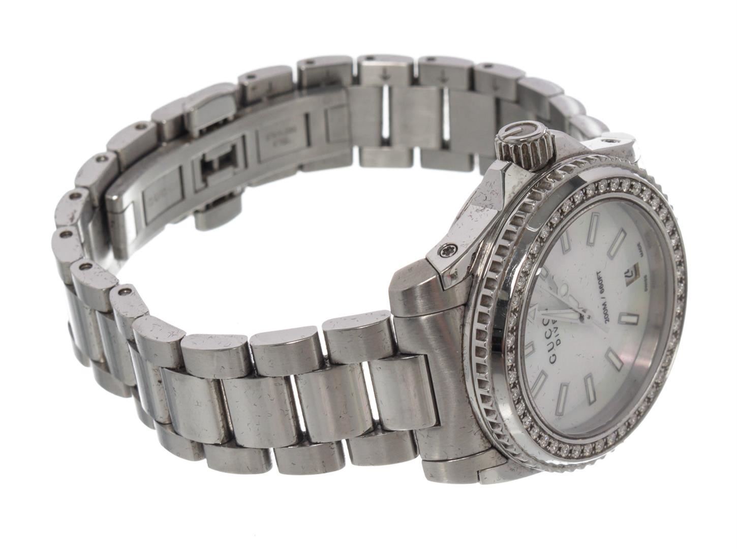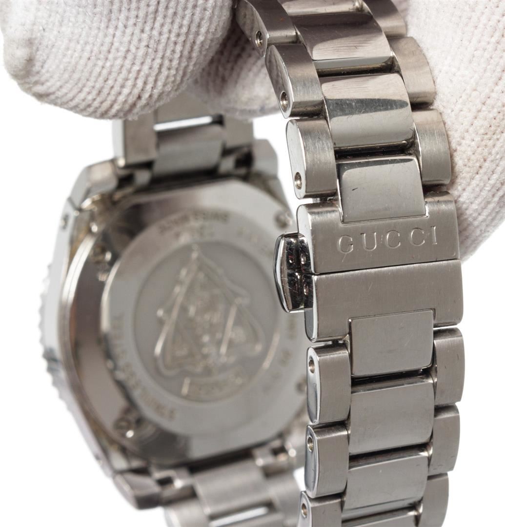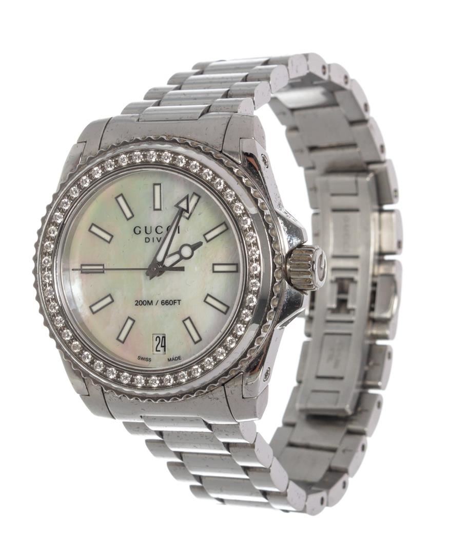 One Gucci Silver Dive 32mm Watch. Item is sold AS-IS. All available information is listed in the description and shown in the photo. Gucci Silver Dive 32mm Watch with silver-tone hardware.