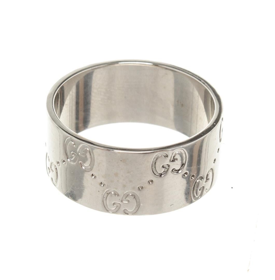 One Gucci Silver Icon Wide Ring. Item is sold AS-IS. All available information is listed in the description and shown in the photo. Gucci Silver Icon Wide Ring with silver-tone hardware. Size: 8