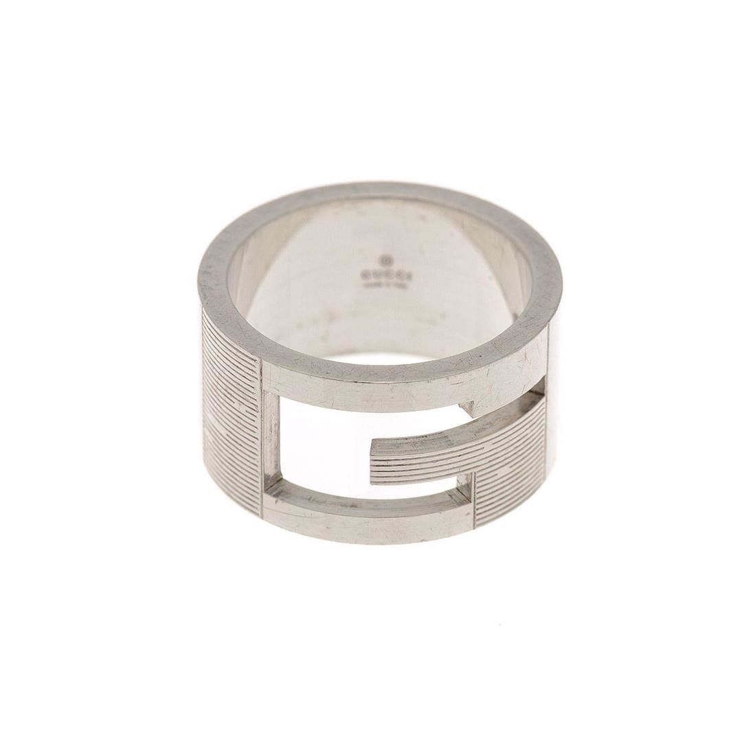 Gucci Silver Ring US 8.25/IT 18 with gold-tone hardware, Condition: Pre-Owned Good overall, please see photographs for detail.