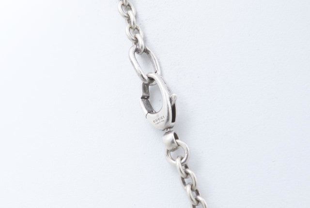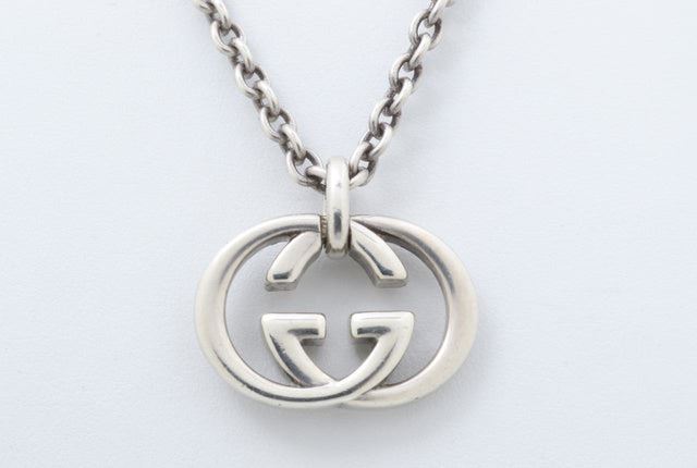 Gucci GG necklace features a silver-tone hardware, long neck chain, an interlocking GG pendant and a lobster claw closure.