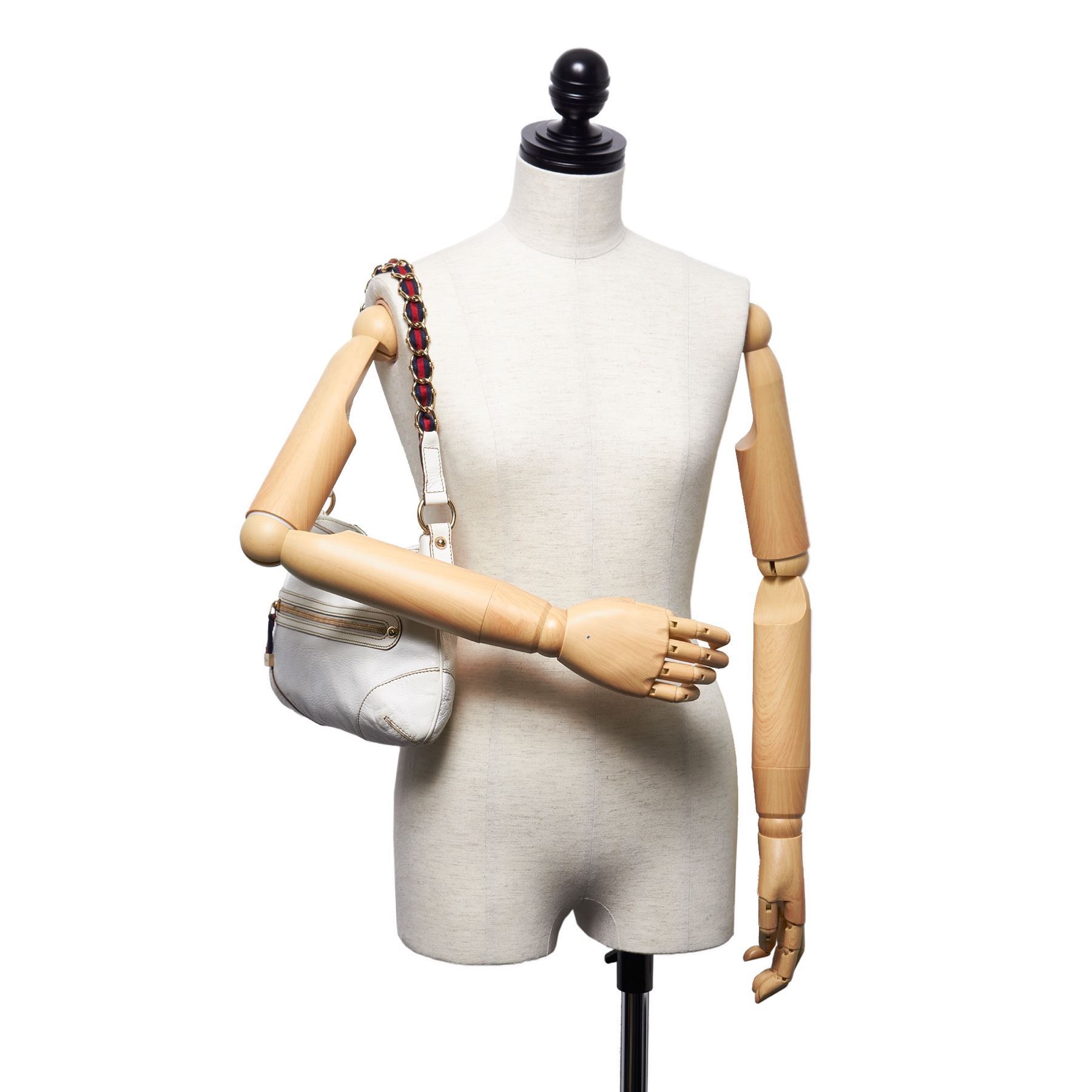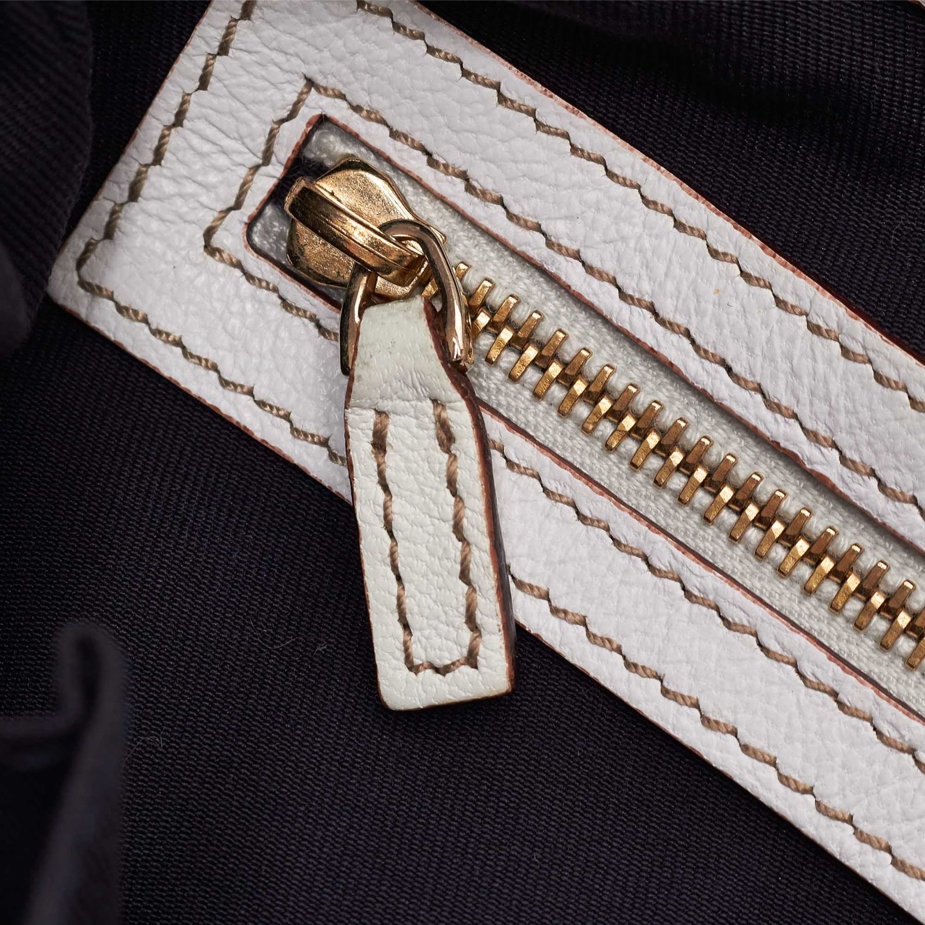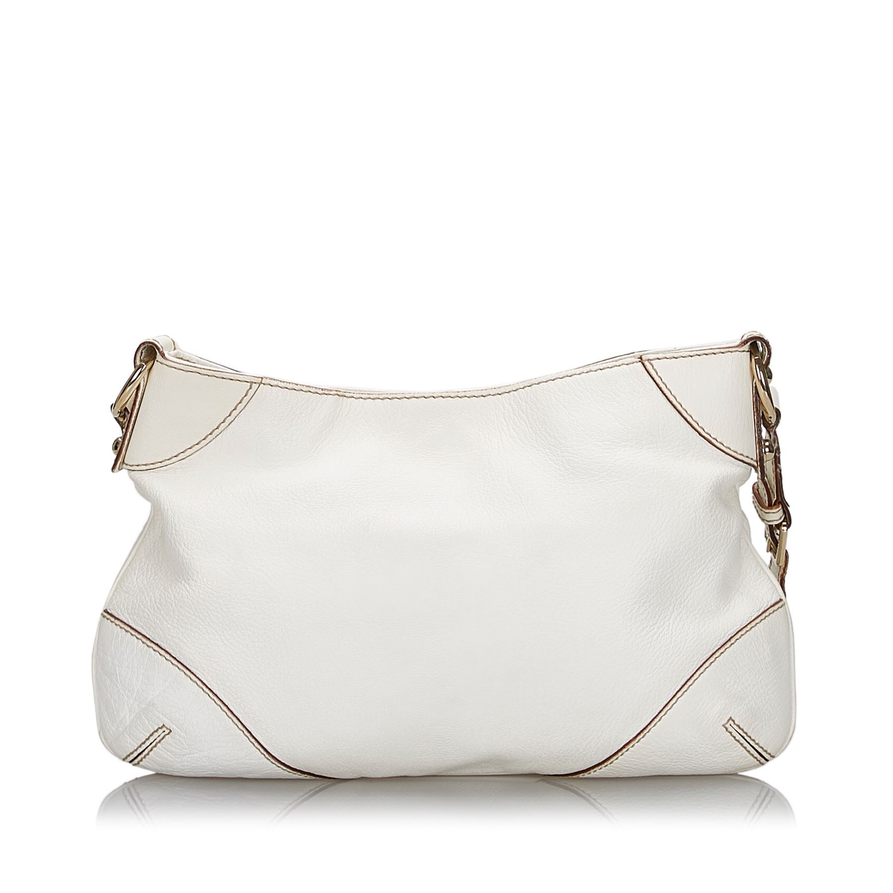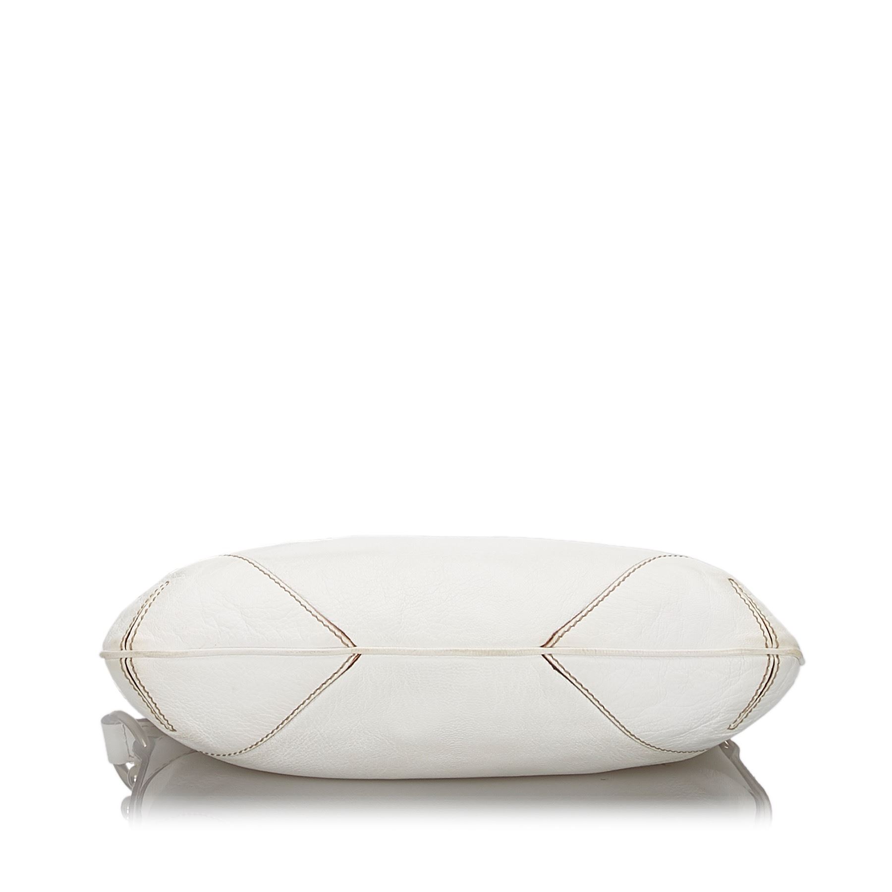 The Capri baguette features a leather body, chain handle, top zip closure, exterior zip pocket and interior zip pocket. Leather x Others White Exterior front is stained. Exterior corners is scratched. Interior lining is stained. Size: 20 x 30 x 1 Card: NO Made in: ITALY