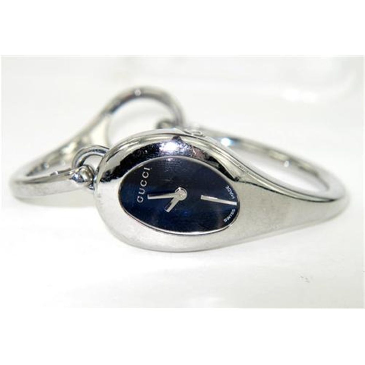 Gucci Stainless Steel Bangle Watch. Watch's Weight: 39.7 grams. The measurement of watch head: 20 x 12 mm and 8 mm in thickness. The measurement of bangle watch: 52 x 45 mm. Swiss made. Water Resistant. Chain is 3 mm wide.