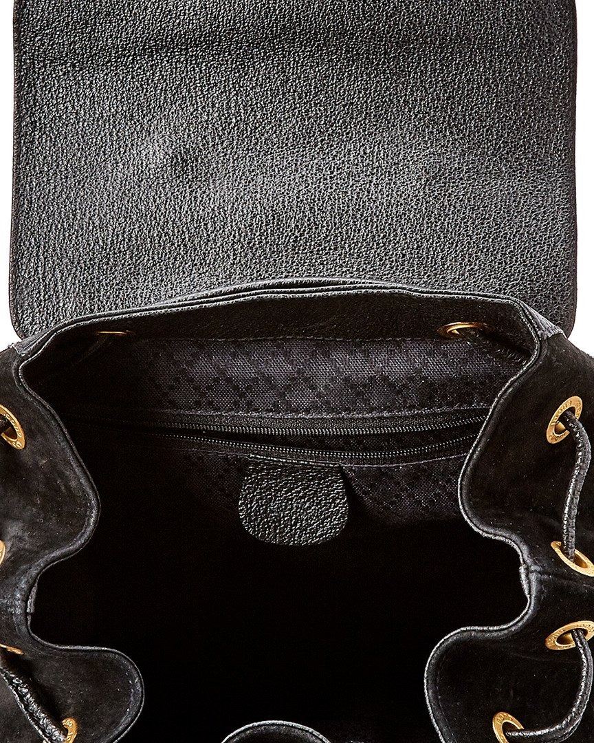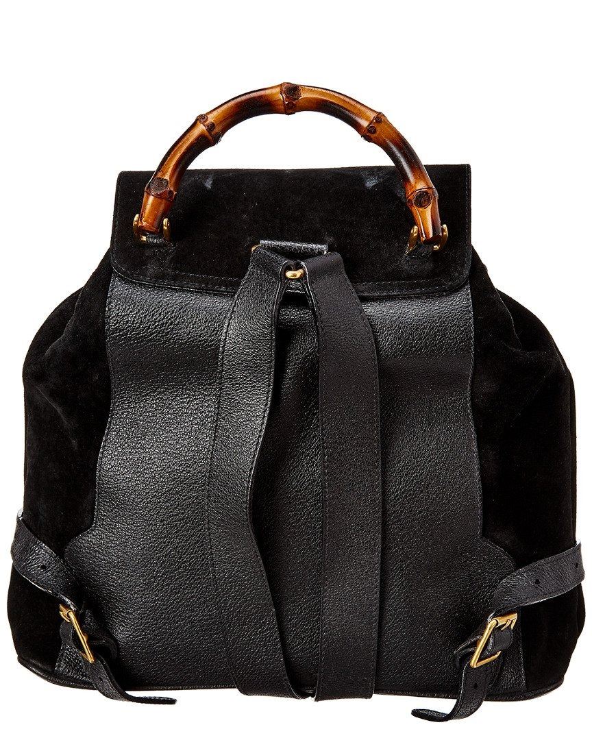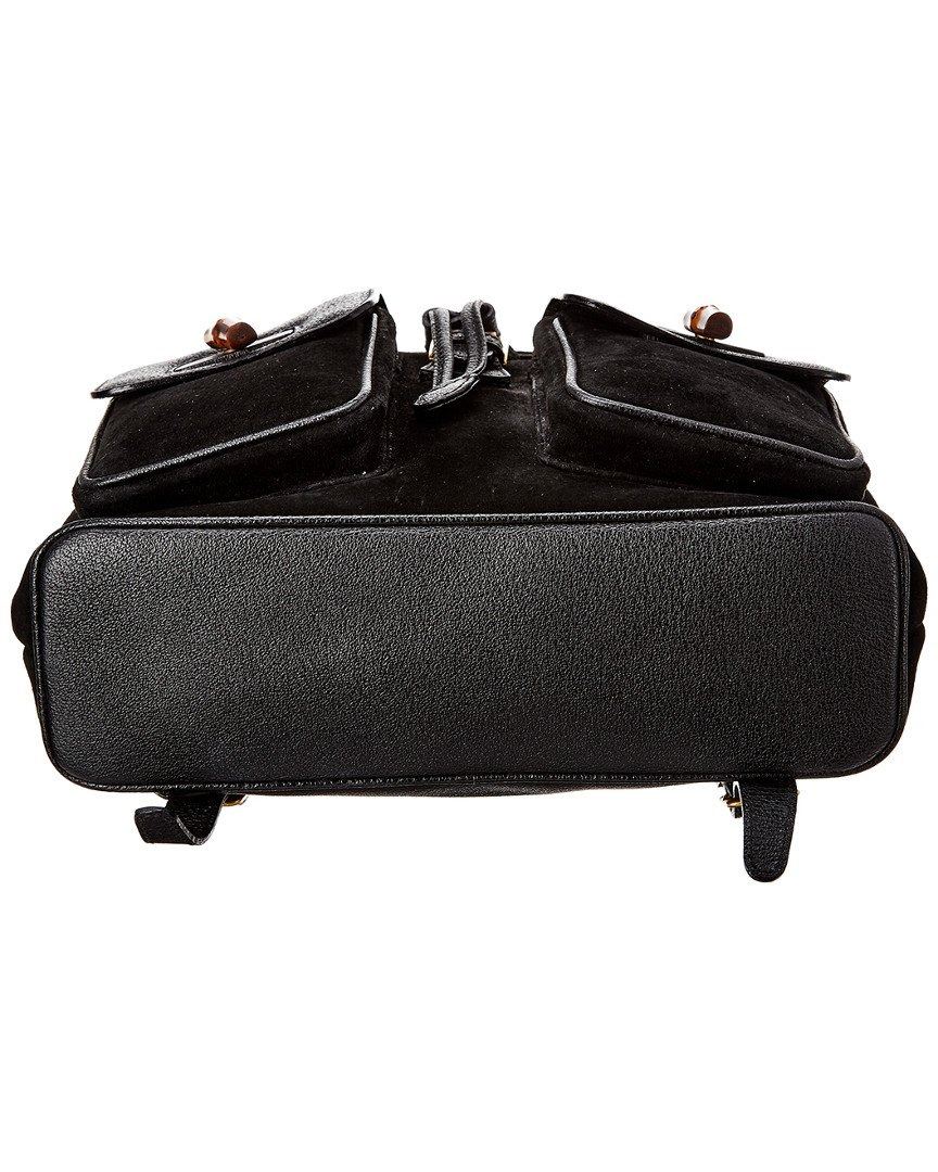 Large Bamboo Backpack In Black Suede With Canvas Lining And Gold-Tone Hardware