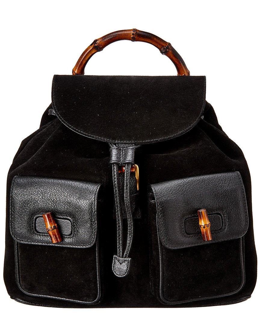 Large Bamboo Backpack In Black Suede With Canvas Lining And Gold-Tone Hardware