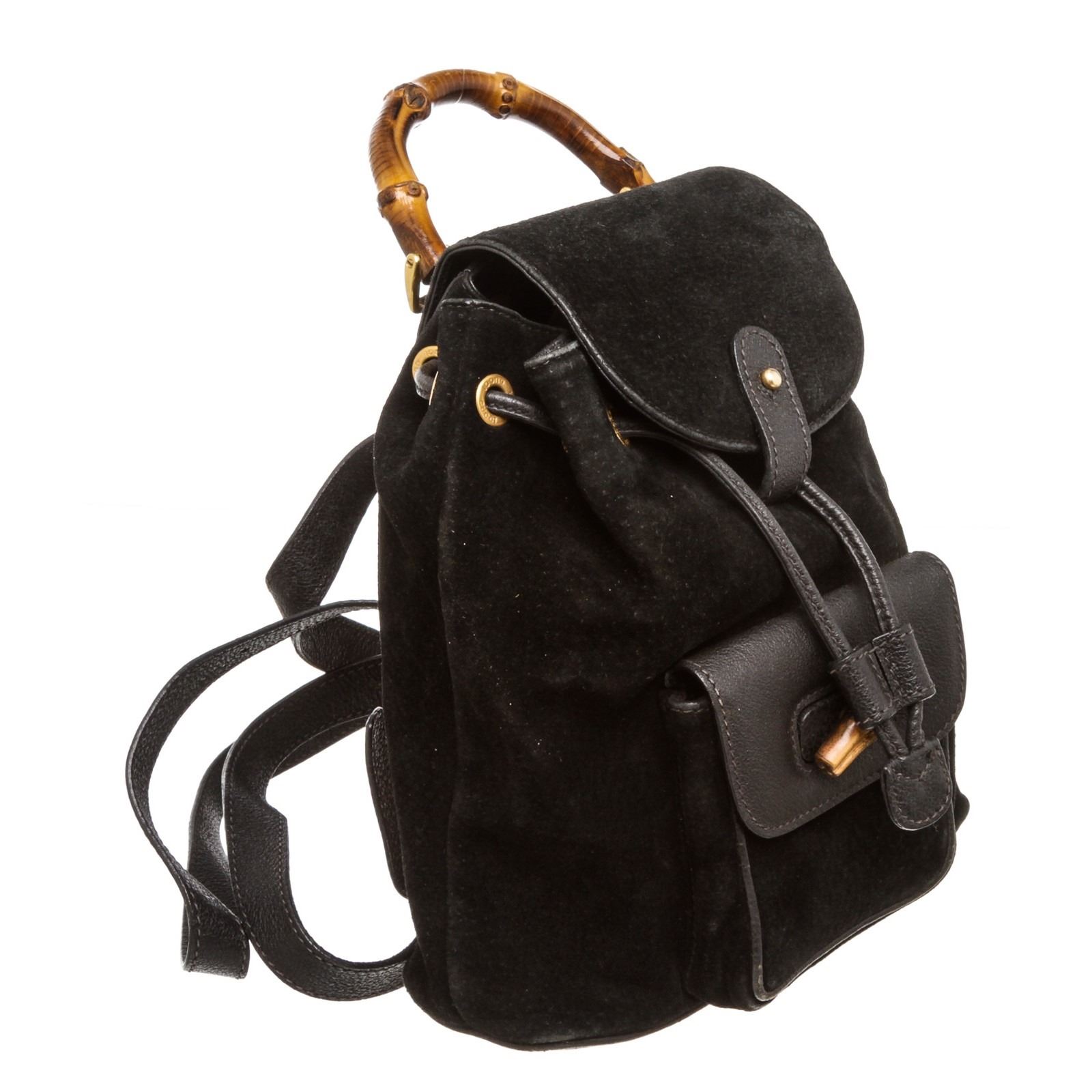 Style: Gucci Black Suede Drawstring Bamboo Mini Backpack