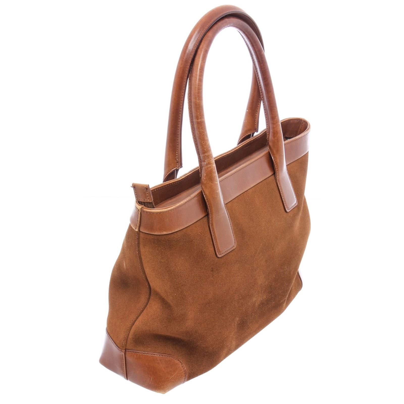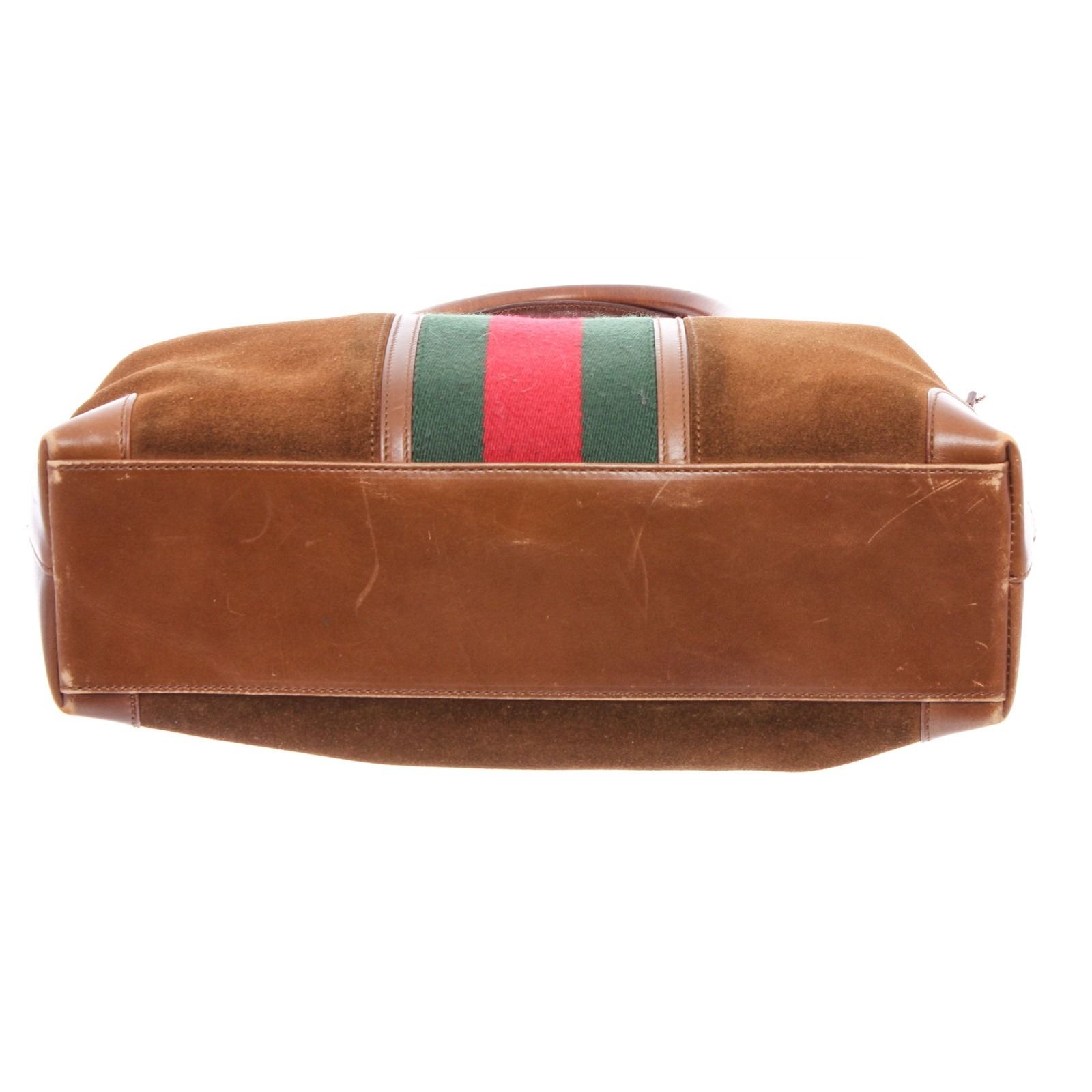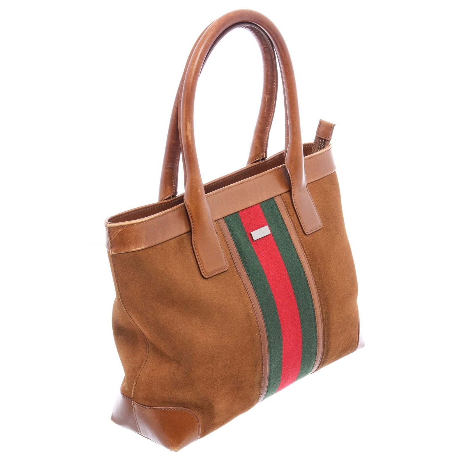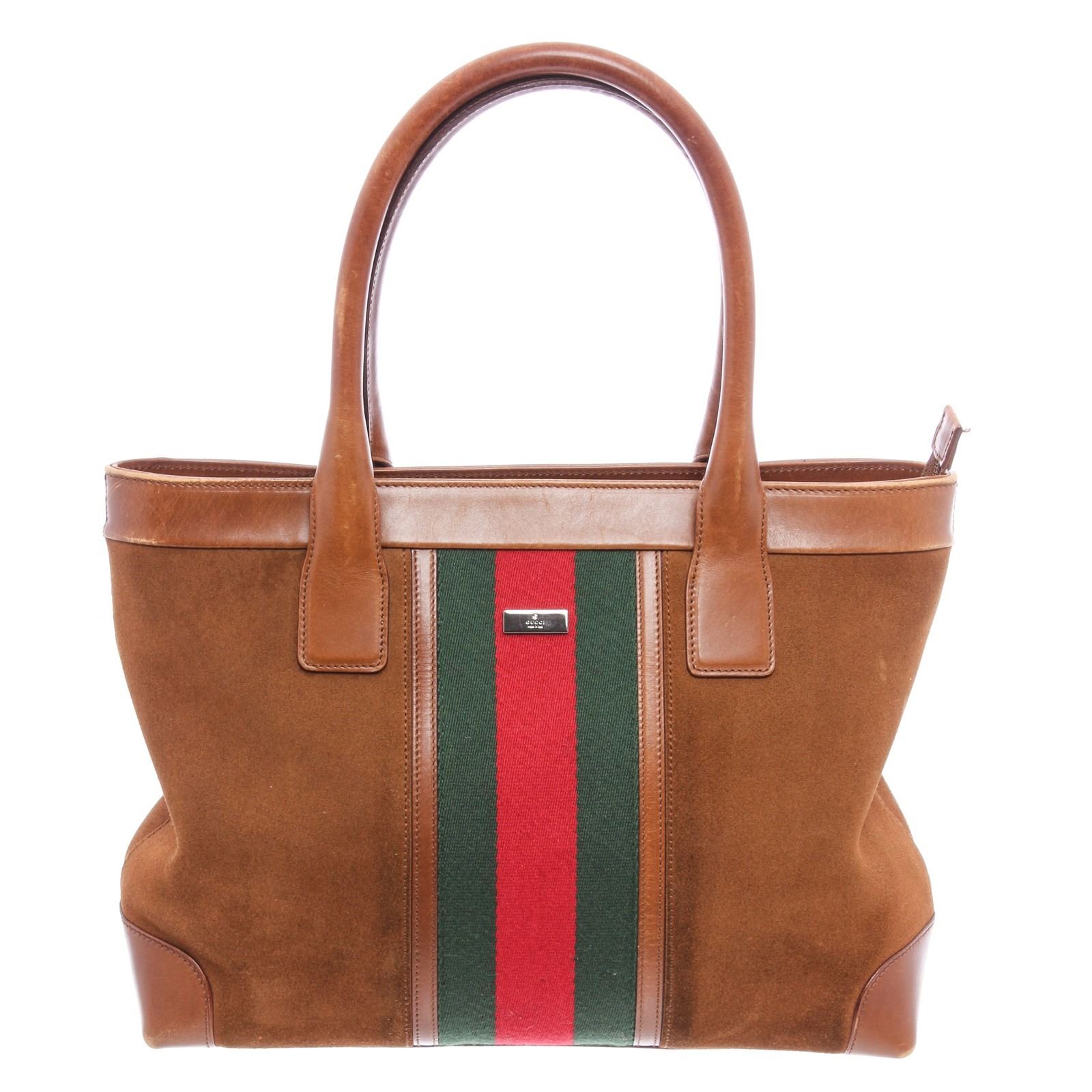 Style: Gucci Brown Suede Leather Web Tote Bag