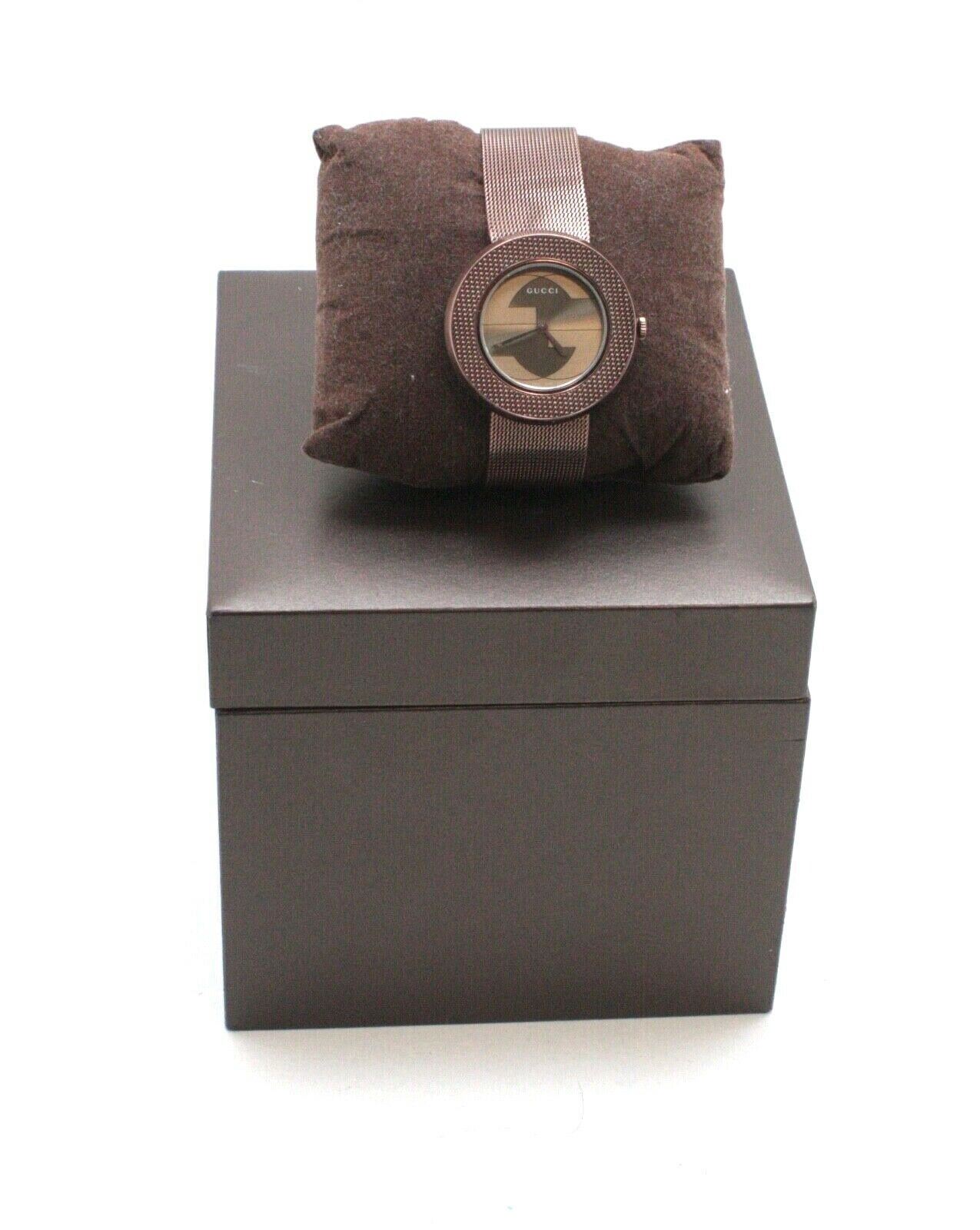 GUCCI LADIES SWISS U-PLAY BROWN PVD MESH BRACELET WATCH