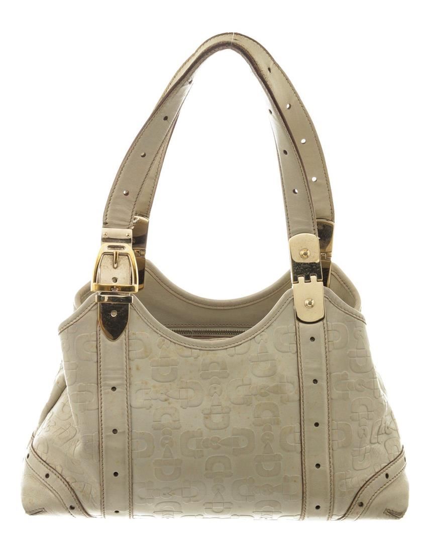 Gucci White Leather Small Hobo Bag with leather, gold-tone hardware, trim leather, dual top handle and flap closure.