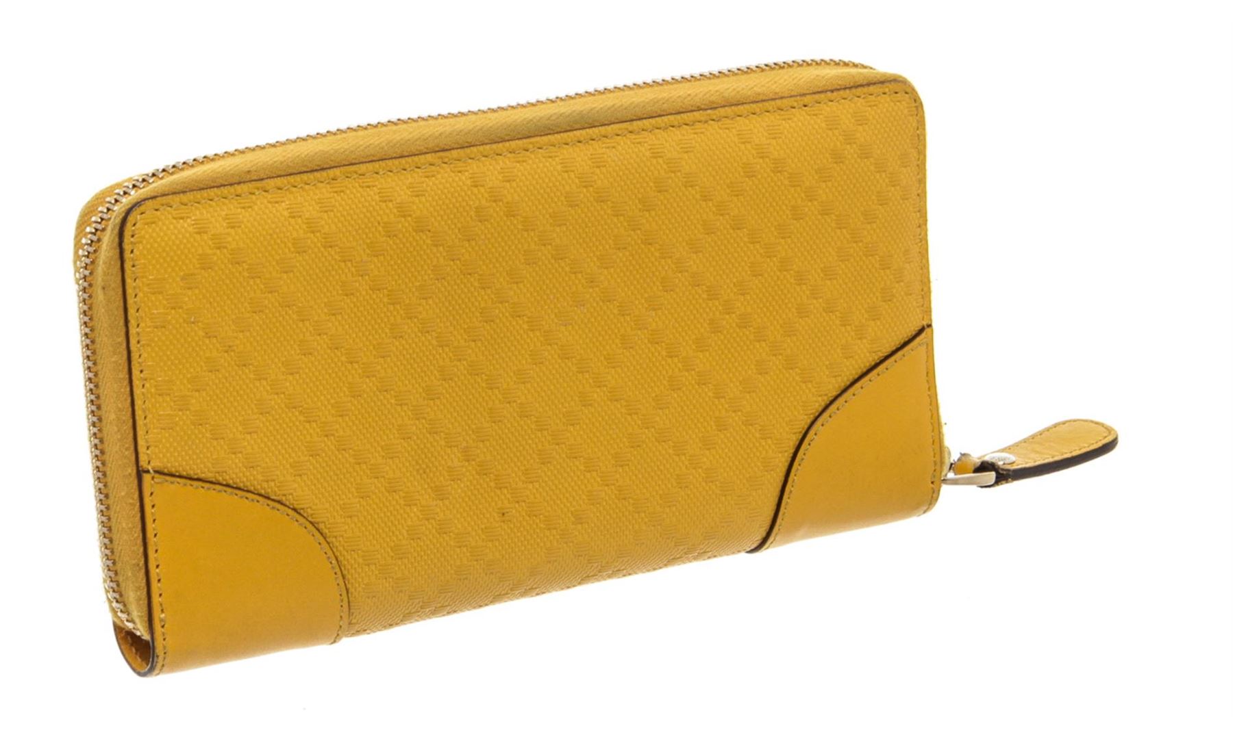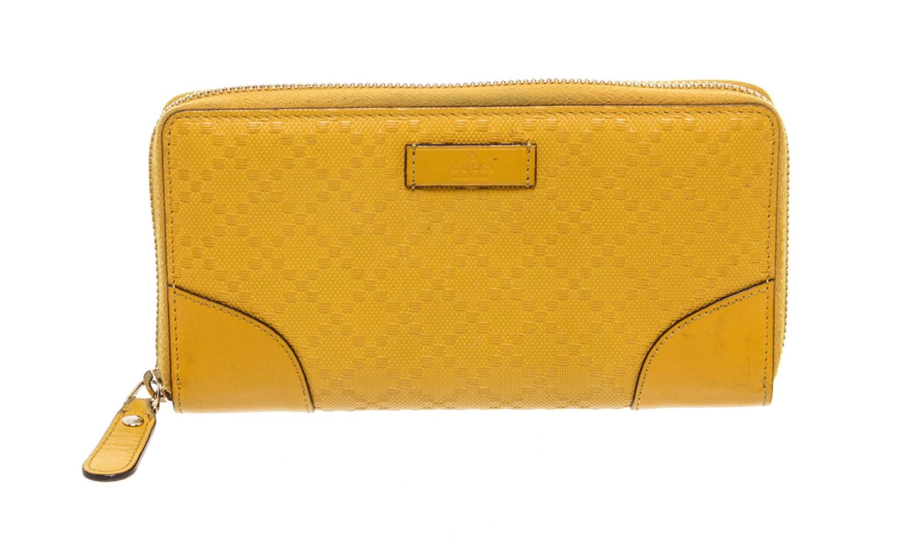 Gucci Yellow Coated Canvas Leather Zippy Wallet. Authentic.